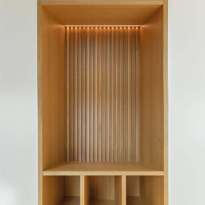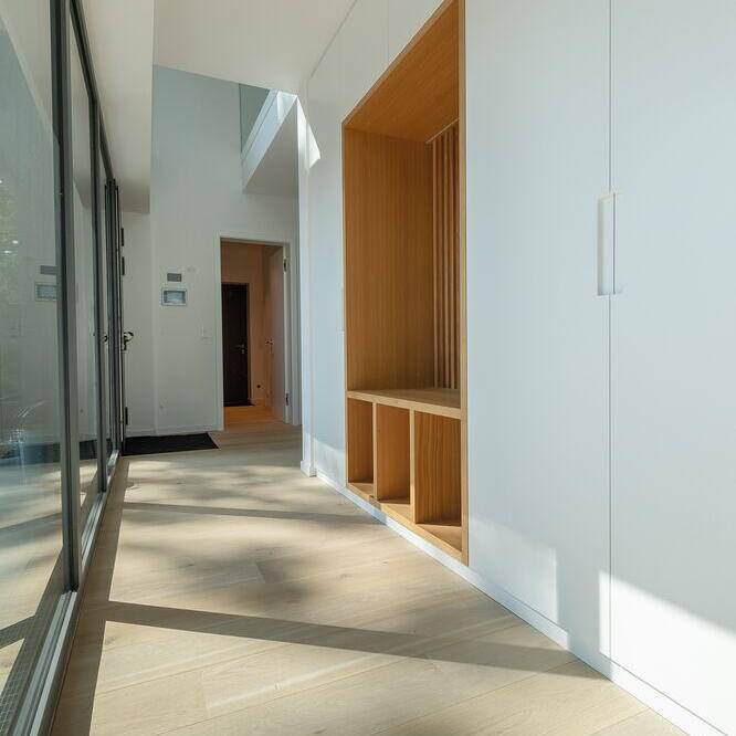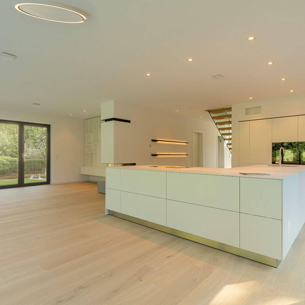 Die größte Herausforderung bestand darin, die moderne Formensprache des Baukörpers mit den strengen Vorgaben des Bebauungsplanes in Einklang zu bringen. Besonders die Genehmigung für das Satteldach ohne Überstand und die Gauben war ein langwieriger Prozess, der Geduld und sorgfältige Planung erforderte. Nun besticht das Haus durch die Kombination aus minimalistischer Architektur und luxuriöser Innenausstattung. Ein fortschrittliches Smart-Home-System ermöglicht die Steuerung von Licht, Heizung und Sicherheitssystemen über mobile Endgeräte.