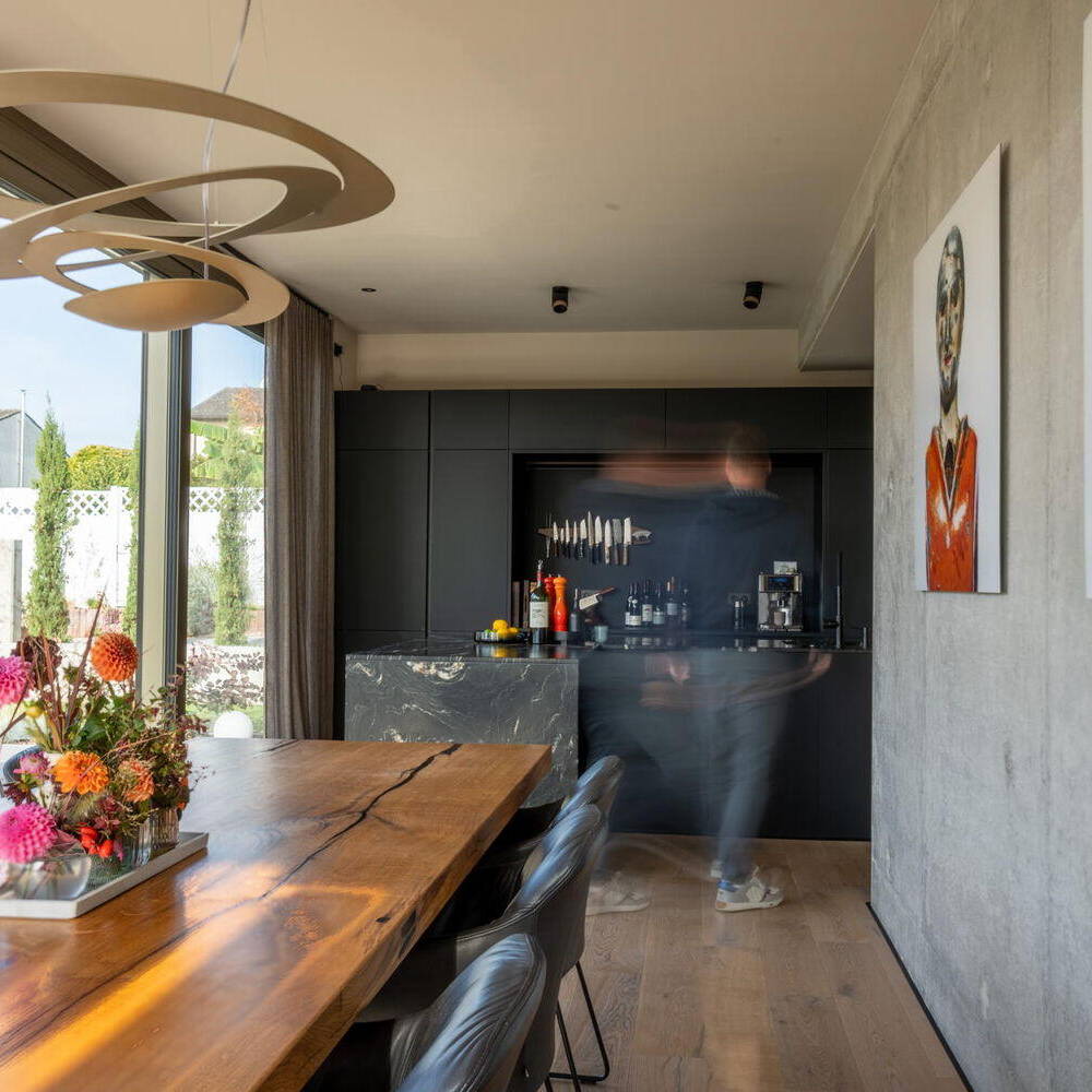 Ein Traumhaus für einen Immobilienprofi zu entwerfen klingt nach einer spannenden Herausforderung. Architekt Jens Paul Neugebauer vom Büro JPN Architekten hat spontan zugesagt als ein befreundeter Immobilienmakler ihn „um Hilfe“ bat. Eigentlich war die Bauherrschaft – die zugegeben ein Faible für‘s Unkonventionelle besitzt – völlig unvoreingenommen. Das Paar wünschte sich ein Haus „zum alt werden“, in dem die passionierten Köche große Gastlichkeit mit Familie und Gästen leben können. Soweit, so nicht ungewöhnlich. Das neue Zuhause sollte sich zudem durch eine zeitlose, elegante und moderne Architektur auszeichnen.