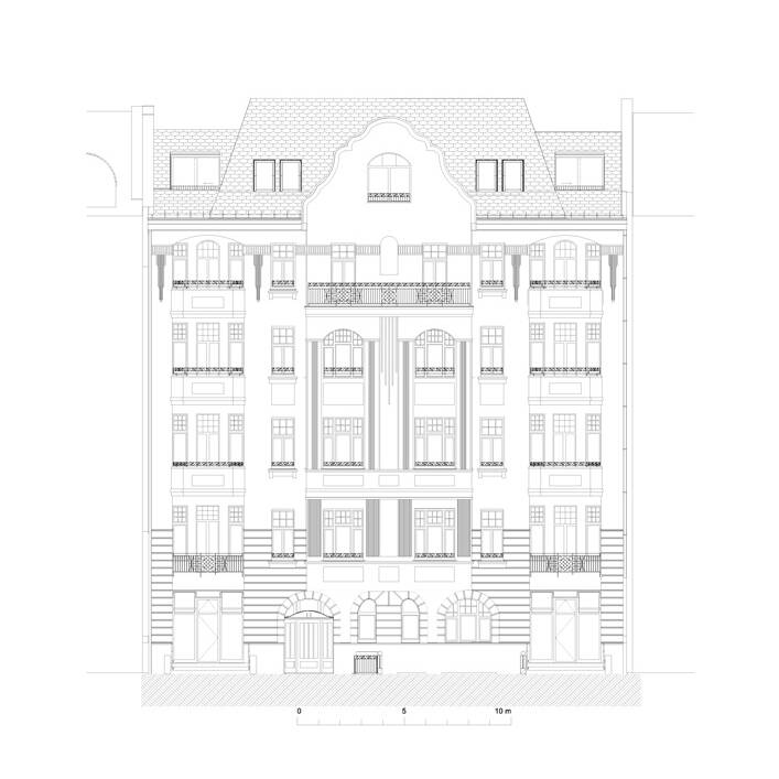 „Rund die Hälfte der Wohnungen wurden kernsaniert. Zudem haben wir durch eine Flächenerweiterung in einem ehemaligen Lichthof des Gebäudes größere und zeitgemäße Bäder in die Altbauwohnungen eingebaut und die Wohnungen mit Wohnküchen und Fußbodenheizung ausgestattet“, erläutert Architekt Christian Laute. Sowohl die innenliegende, geschichtsträchtige Aufzugsanlage als auch das Treppenhaus wurden nach historischem Vorbild erneuert bzw. rekonstruiert. Dazu wurden die historischen Stuckelemente im gesamten Treppenhaus des Vorderhauses überarbeitet und die Malerarbeiten analog von Farbfreilegungen wiederhergestellt. Auf diese Weise ist eine historisch orientierte Nachbildung des Marmordekors gelungen.