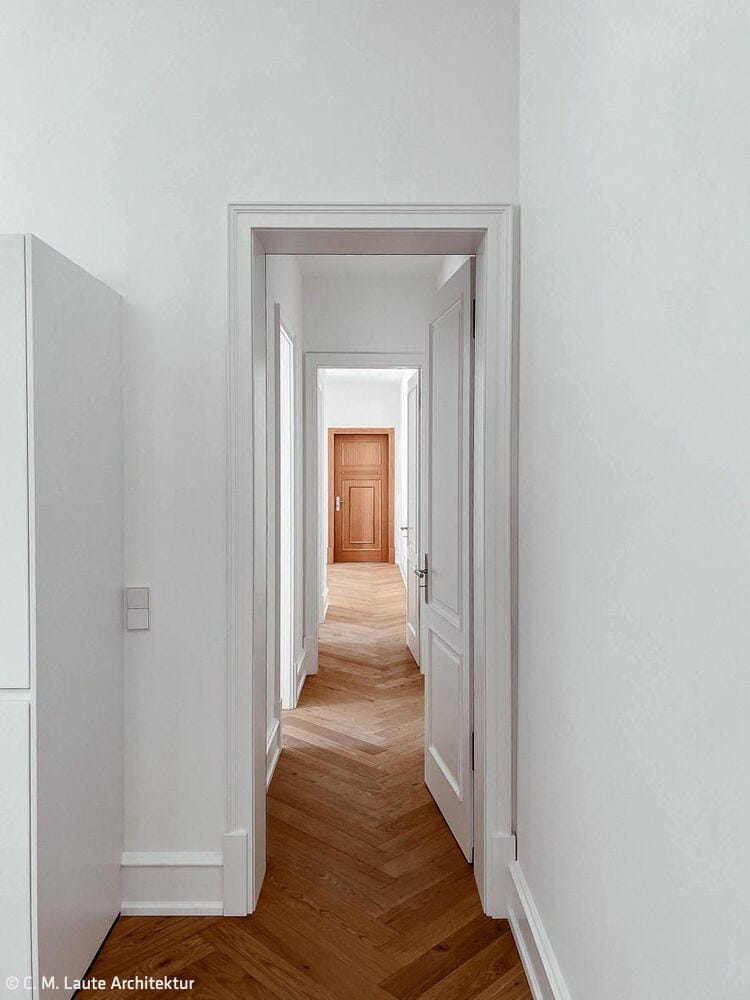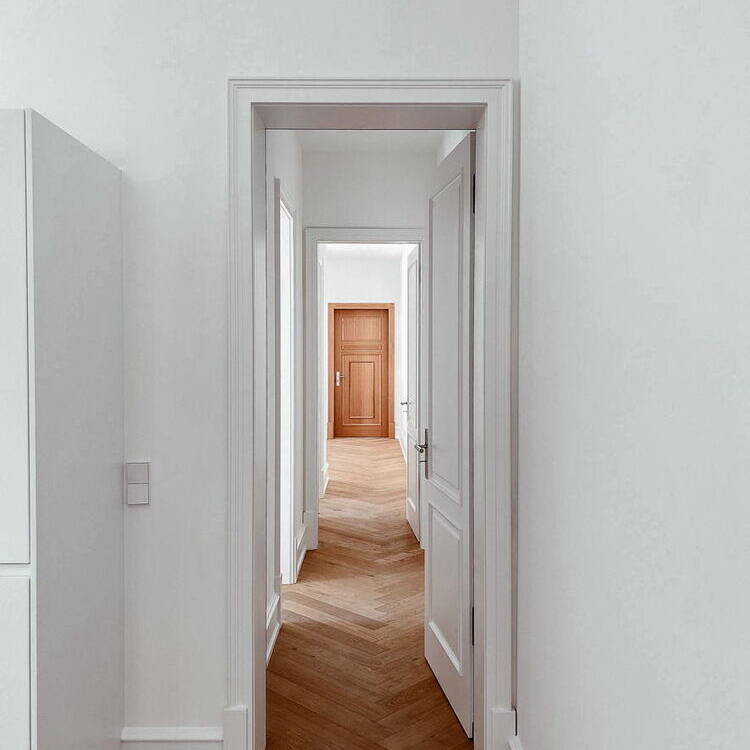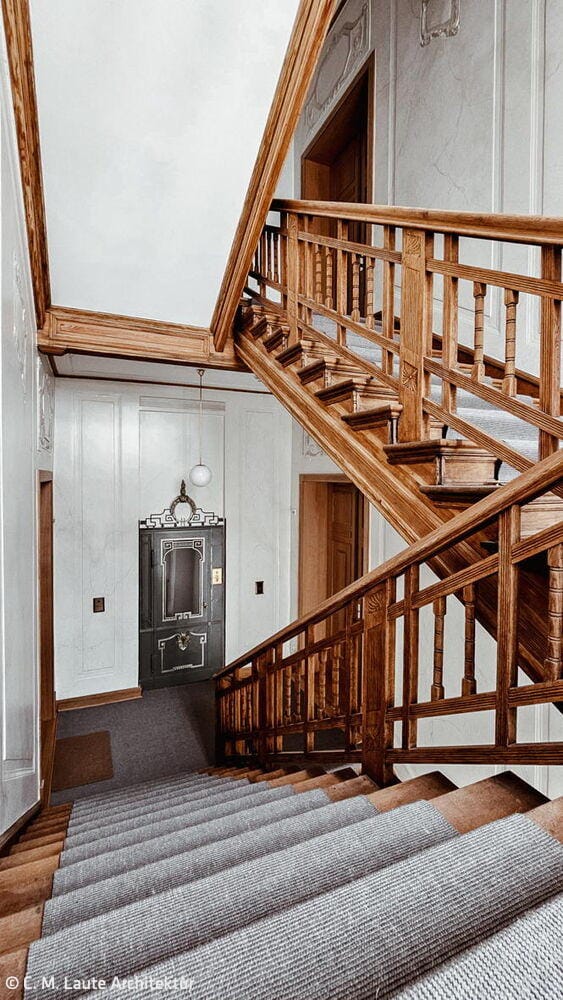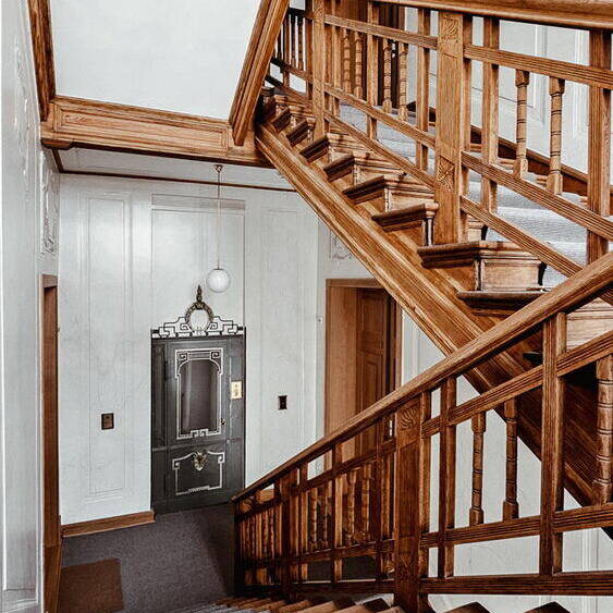 „Rund die Hälfte der Wohnungen wurden kernsaniert. Zudem haben wir durch eine Flächenerweiterung in einem ehemaligen Lichthof des Gebäudes größere und zeitgemäße Bäder in die Altbauwohnungen eingebaut und die Wohnungen mit Wohnküchen und Fußbodenheizung ausgestattet“, erläutert Architekt Christian Laute. Sowohl die innenliegende, geschichtsträchtige Aufzugsanlage als auch das Treppenhaus wurden nach historischem Vorbild erneuert bzw. rekonstruiert. Dazu wurden die historischen Stuckelemente im gesamten Treppenhaus des Vorderhauses überarbeitet und die Malerarbeiten analog von Farbfreilegungen wiederhergestellt. Auf diese Weise ist eine historisch orientierte Nachbildung des Marmordekors gelungen.