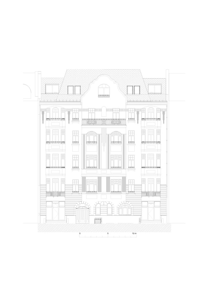 Nach wie vor ist Wohnraum in der Hauptstadt knapp. Um mehr Lebensraum zu schaffen, ist eine Option, Flächen in bestehenden Wohngebäuden zu erweitern. Genau dieses Ziel verfolgte der Eigentümer dieses gründerzeitlichen Wohn- und Geschäftsgebäudes in Charlottenburg. Mit der Umsetzung seiner Pläne beauftragte er das Büro C. M. Laute Architektur. Geplant war, das Gartenhaus um ein Voll- und Dachgeschoss aufzustocken. Zudem sollten das Vorderhaus und die beiden Seitenflügel um einen Dachgeschossneubau erweitert werden, während beim übrigen Gebäudebestand eine Strangsanierung gewünscht war.