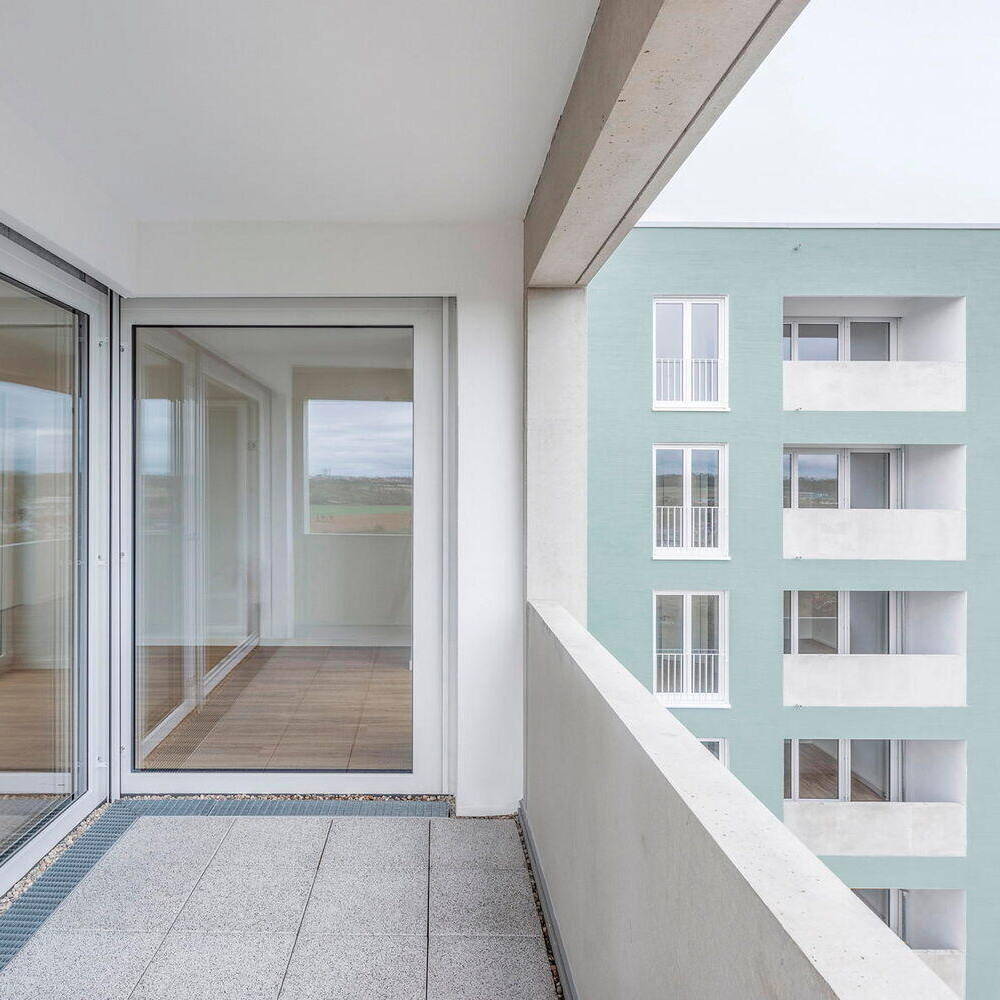 Betonfertigteile betonen die Loggien und setzen gezielt gestalterische Akzente. Die gesamte Gebäudetechnik sollte wirtschaftlich und nutzerfreundlich ausgelegt werden. Bewusst entschied man sich daher auch gegen eine Fußbodenheizung und setzte stattdessen auf klassische Heizkörper, die eine schnelle Reaktionszeit und geringere Wartungskosten bieten. Bei der Bauausführung vertraute man auf regionale Handwerksbetriebe, die eine hohe Qualität und Termintreue während der gesamten Bauphase gewährleisteten.