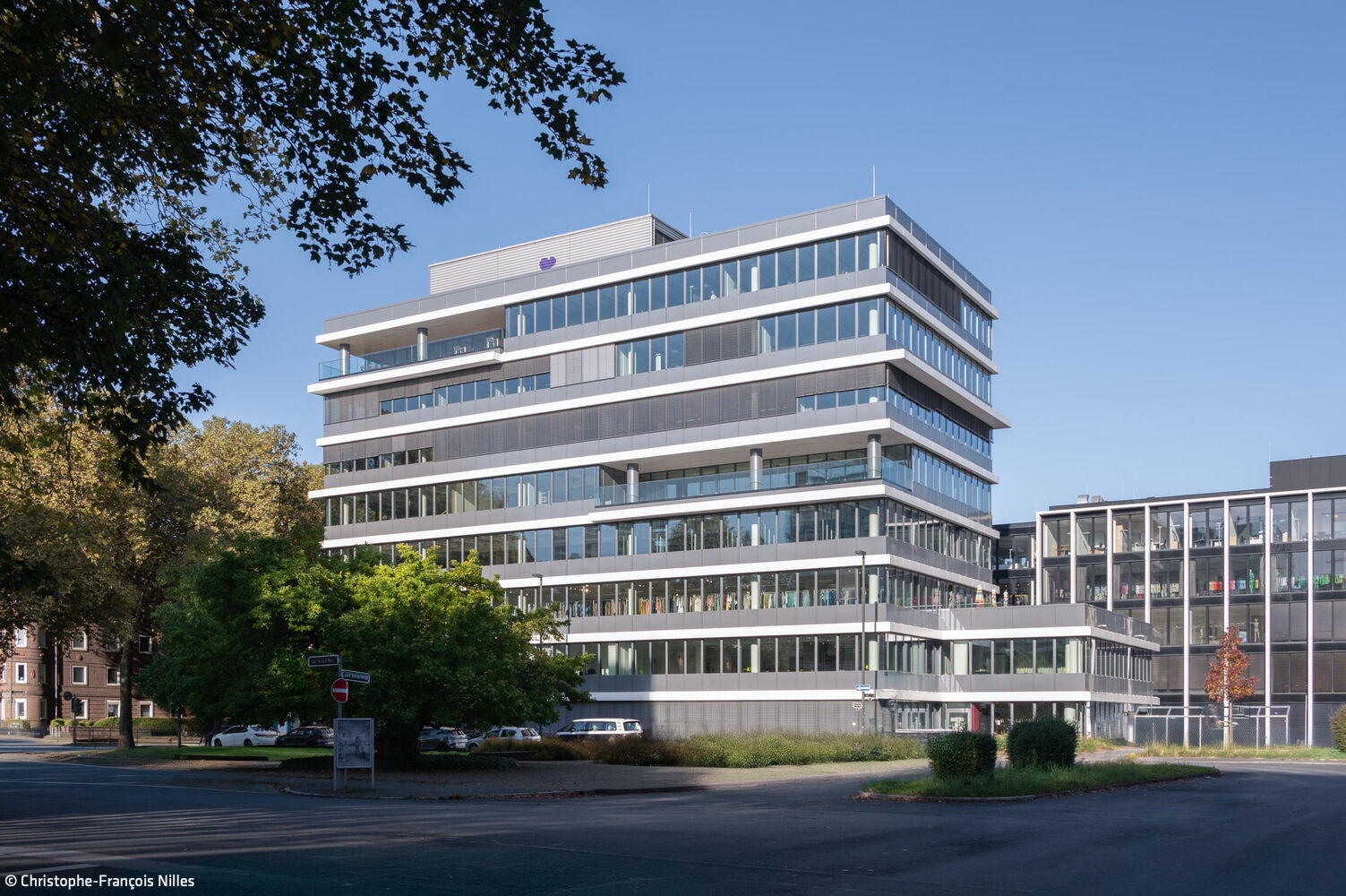 Über Jahrzehnte war die „New Fashion Plaza“ am Karl-Arnold-Platz in der Modebranche eine feste Adresse. Nun hat das frühere zentrale Mode-Order-Center eine Transformation erlebt, die es in die moderne Bürowelt überführt: RKW Architektur + haben den achtgeschossigen Bestand aus den 1970er-Jahren saniert und mit begrünten Einschnitten zum Bürostandort „LevelZ“ umgenutzt.