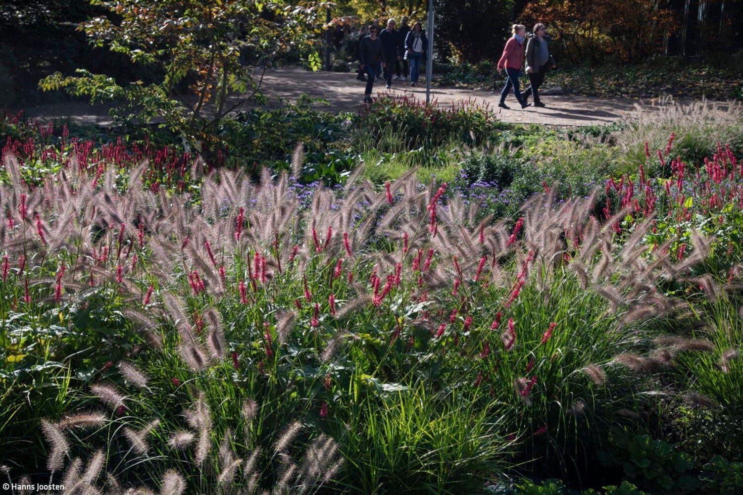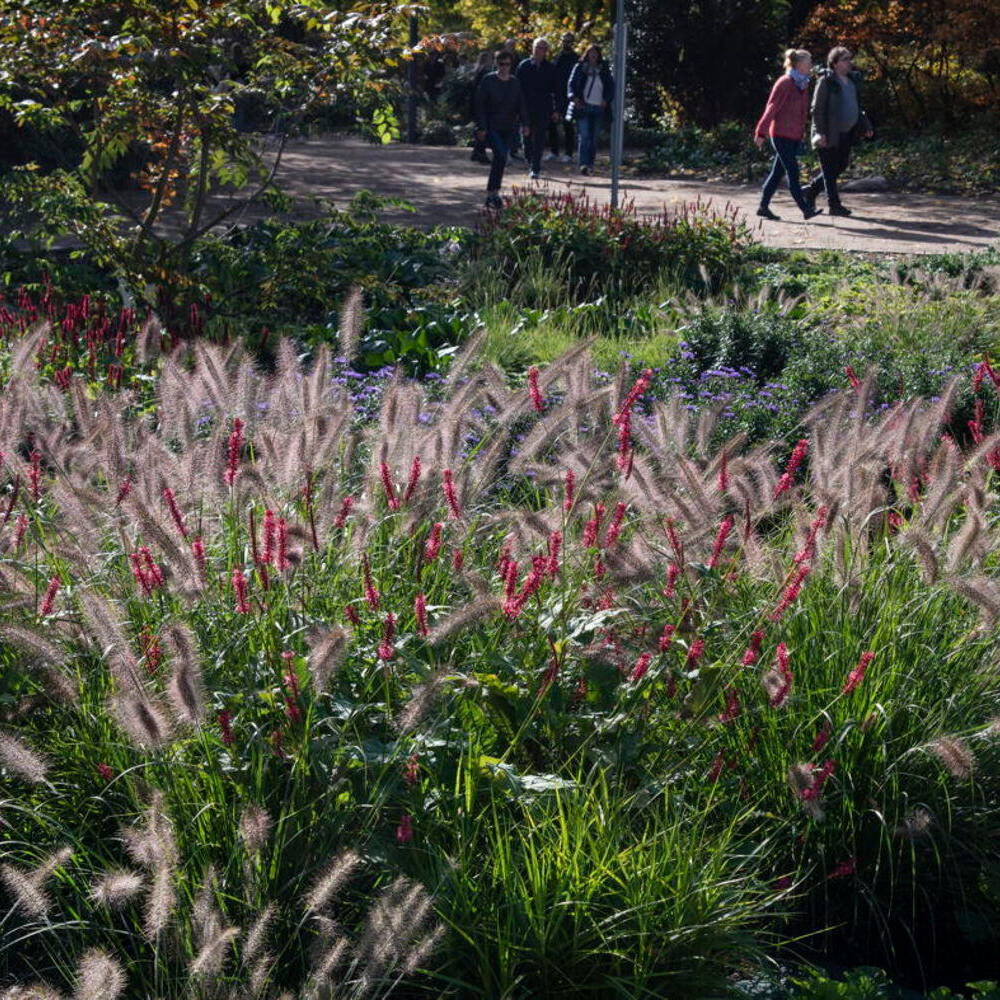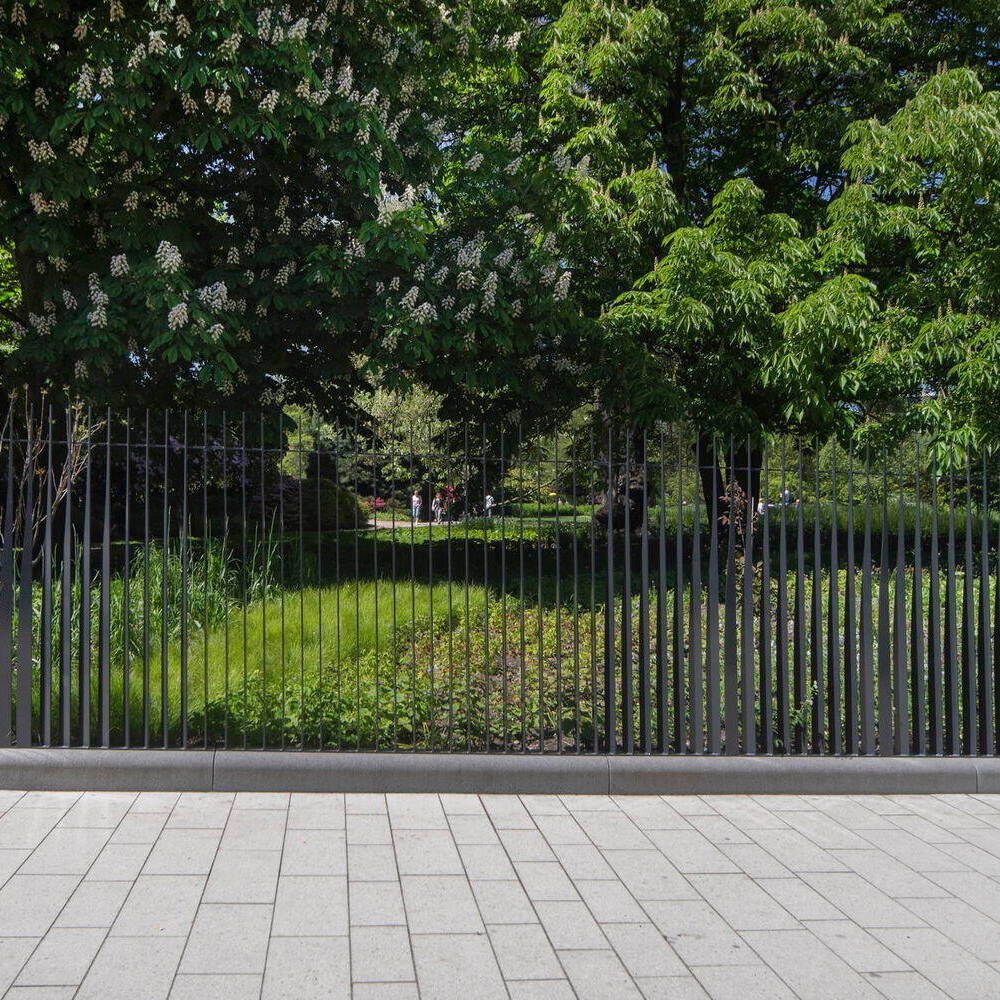 Die Landschaftsarchitekt:innen lösten die komplexe Aufgabe mit großer Sensibilität und Eleganz. Ihr Umgang mit den denkmalgeschützten Gartenkunstwerken „Planten un Blomen“ sowie „Alter Botanischer Garten“, ihre zukunftsfähige Weiterentwicklung und die Einbindung in Hamburgs historisch bedeutsamen städtebaulichen Kontext ließen einen öffentlichen Freiraum von großer Qualität entstehen. Die bis zu sechs Meter hohe Stützwand gegenüber dem Bahnhof wurde entfernt und so freie Sicht auf den Park geschaffen. Für eine barrierefreie Erschließung wurde die alte Fußgängerbrücke zurückgebaut, die einst den Höhenunterschied zwischen Bahnhofsentree und Wallanlagen überbrückt hatte. Der Weg führt nun direkt und barrierefrei vom Bahnhofsportal entlang eines intensiv bepflanzten Schaufensters unmittelbar zum Alten Botanischen Garten. Der markante Einfriedungszaun, der sich je nach Blickrichtung von offen zu geschlossen präsentiert, inszeniert Ein- und Ausblicke auf eine Abfolge von Inseln, die abwechselnd natürlich-üppig mit Blütenstauden, Gräsern oder Rasenflächen sowie neuen Bäumen und wogenden Staudenflächen bepflanzt ist.