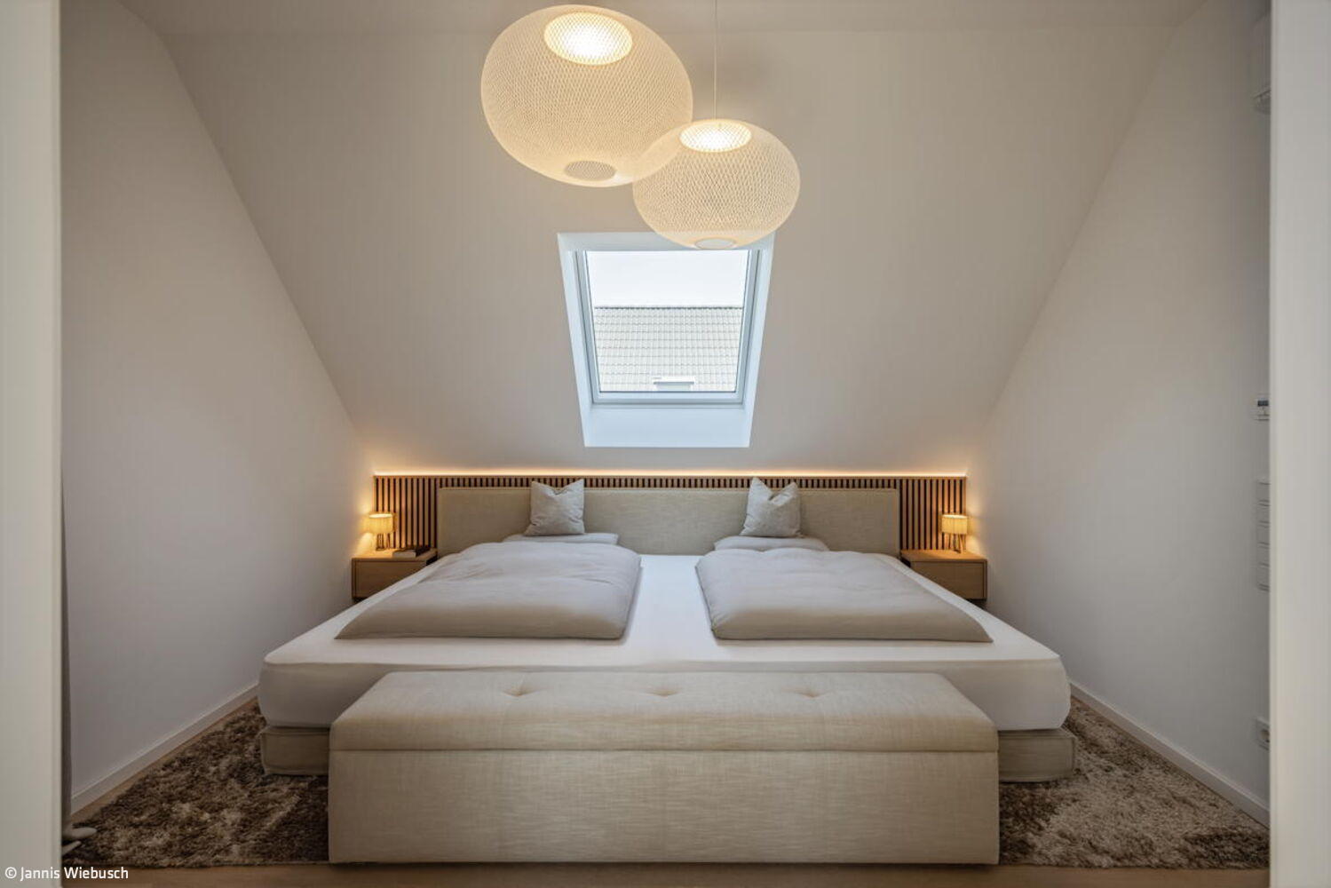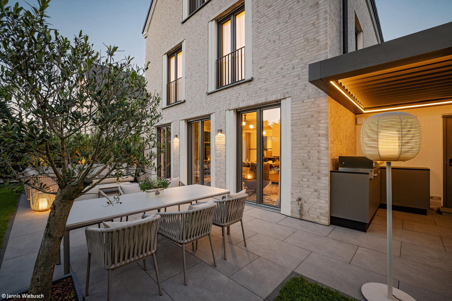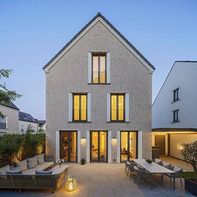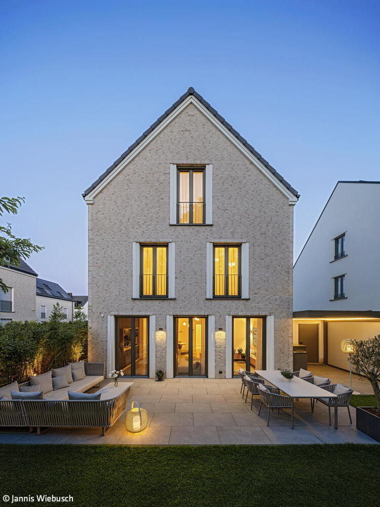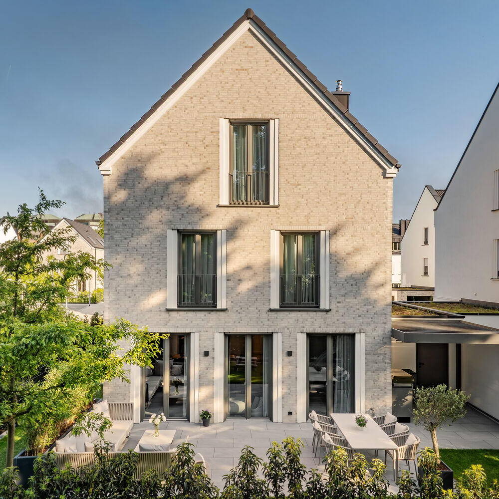 Ein Leben im Penthouse passte nicht mehr zur wachsenden Familie – mit der Geburt von Zwillingen entstand der Wunsch nach einem Zuhause, das Stadtlage mit Raum für die Kinder vereint. Entsprechend wurde ein Haus gesucht, das zentrumsnah liegt, fußläufig Schulen, Kindergärten, Supermärkte und Naherholungsräume erreichbar macht – und gleichzeitig einen eigenen Garten bietet. All das fanden sie in Düsseltal, in einem Neubauprojekt auf dem Gelände einer ehemaligen Kleingartenanlage. Nur wenige Gehminuten von der Innenstadt entfernt verbindet die Lage die Vorteile der Stadt mit der Nähe zur Natur.