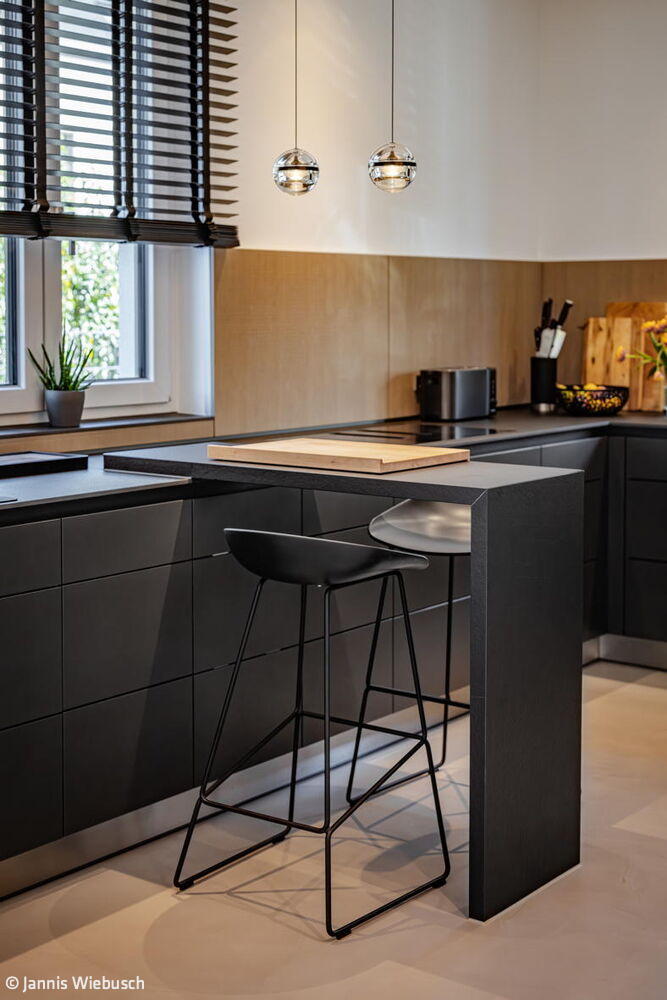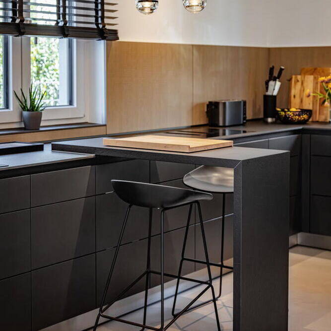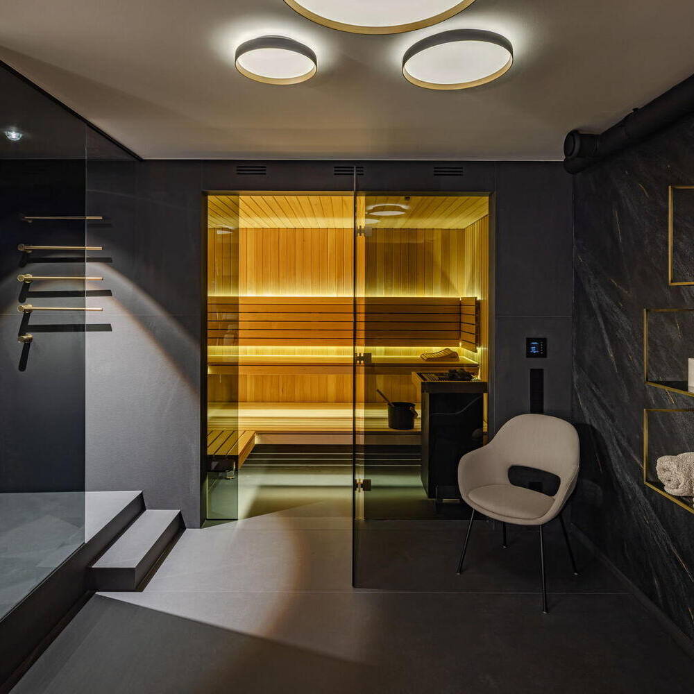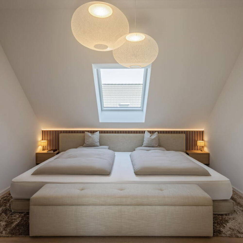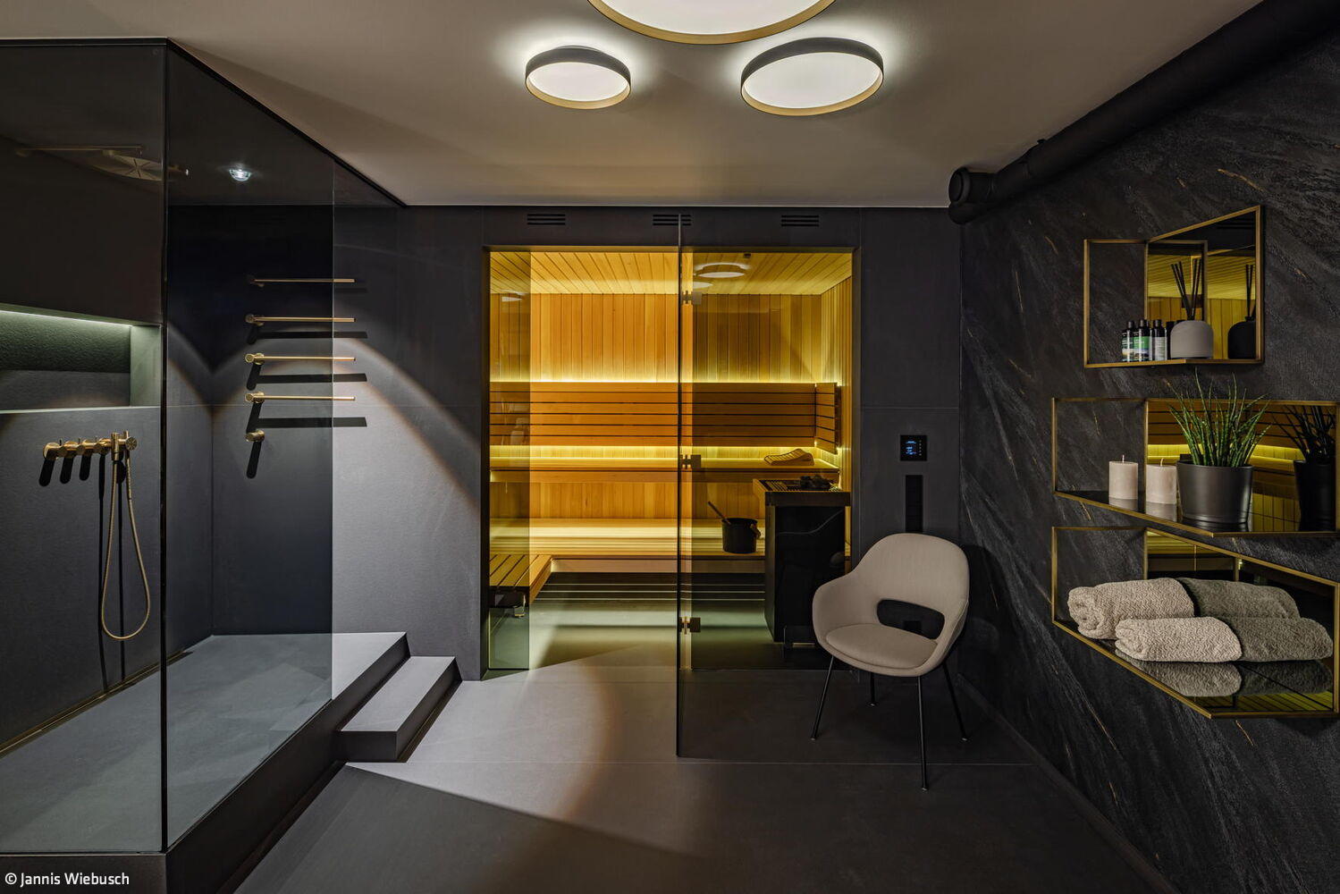 Der ursprüngliche Neubau, den der Bauträger auf diesem Grundstück errichtet hatte, entsprach nicht den persönlichen Vorstellungen der Familie. Gemeinsam mit dem Architekturbüro OneContact wurde das Projekt grundlegend überarbeitet, um den Bedürfnissen der Bewohner:innen gerecht zu werden. Das Ergebnis ist ein maßgeschneidertes Zuhause, das in jedem Detail auf die Wünsche und den Alltag der Familie abgestimmt ist. Im Erdgeschoss öffnete sich durch den Rückbau zweier tragender Wände der Raum: Eine großzügige Sichtachse verbindet nun Küche, Essbereich und Wohnzimmer. Bodentiefe Fenster öffnen den Blick auf den liebevoll gestalteten Stadtgarten. Der dreiseitig einsehbare Gaskamin fungiert als subtiler Raumteiler und schafft Atmosphäre. Ergänzt wird das Ensemble durch einen maßgefertigten Einbauschrank mit integrierter Bar und Weinkühlschrank. Der Keller wurde ebenfalls neu konzipiert. Hier entstand neben praktischem Stauraum für die Familie ein Fitnessraum mit fließendem Übergang in einen Wellnessbereich mit Sauna und großzügiger Dusche. Eine Lüftungsanlage mit Wärmerückgewinnung ergänzt das technische Konzept. Gestalterisch dominiert ein zurückhaltender Industrielook, der dem Sport- und Erholungsbereich eine klare, zeitgemäße Atmosphäre verleiht. Ein besonderes gestalterisches Element bildet das neu konzipierte Treppenhaus, das die Etagen in Weiß und Eiche verbindet. Highlight ist eine Pendelleuchte mit unterschiedlich langen Lichttropfen, die sich vom Dachgeschoss bis ins Erdgeschoss erstreckt. Dieses Lichtobjekt verleiht dem Treppenraum eine skulpturale Qualität und setzt einen markanten Akzent im Inneren. Das erste Obergeschoss ist dem Nachwuchs gewidmet: Zwei Kinderzimmer, ein Spielzimmer mit integriertem Holzspielhaus und Kletterleiter sowie ein kindgerechtes Bad schaffen hier ein echtes Kinderparadies. Ein Gästezimmer rundet die Etage ab. Das Dachgeschoss ist der private Rückzugsort der Eltern. Der optimierte Grundriss führt vom Badezimmer über das Schlafzimmer bis in den begehbaren Kleiderschrank. Ergänzt wird die Etage durch ein lichtdurchflutetes Homeoffice mit zwei Arbeitsplätzen und individuell gefertigter Möblierung. Technologisch ist das Haus voll vernetzt: Eine umfassende Smart-Home-Steuerung sorgt für Komfort und Effizienz. Die Terrasse erweitert den Wohnraum ins Freie. Das Lichtkonzept inszeniert jeden Raum auf subtile und doch wirkungsvolle Weise. Die Neugestaltung des Neubaus zeigt, wie aus einem standardisierten Entwurf durch architektonisches Feingefühl und individuelle Planung ein maßgeschneidertes Zuhause entstehen kann.