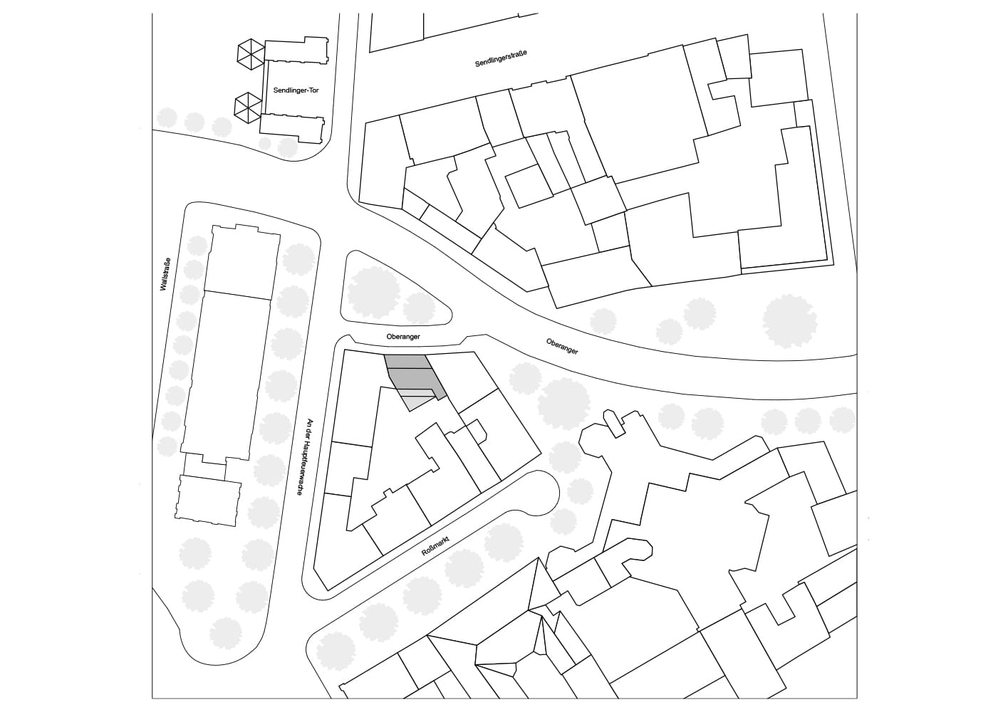 Auf dem Grundstück Oberanger 45 in unmittelbarer Nachbarschaft des Sendlinger Tors stand bis zur Neubebauung ein Gebäude aus den 1970er-Jahren, das aufgrund seines baulich schlechten Zustands abgerissen werden musste. Der heutige Neubau – ein sechsgeschossiges Wohn- und Geschäftshaus – schließt die 12 Meter breite, parallelogrammförmige Baulücke in der Blockrandbebauung am Oberanger. Eine Großzahl der umliegenden Häuser stammt aus dem Wiederaufbau der nach 1945 völlig zerbombten Stadt und ist gekennzeichnet durch eine hohe Inhomogenität. Die Bestandsfassaden unterscheiden sich durch die Verwendung unterschiedlicher Materialien wie Putz, Klinker, Keramik und Naturstein.