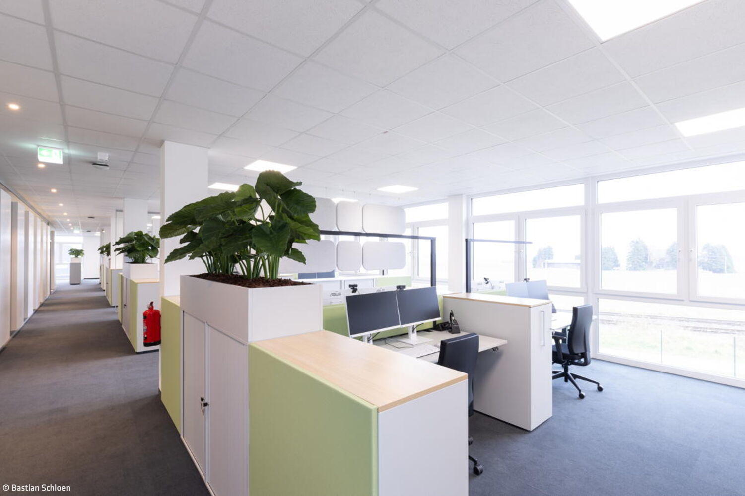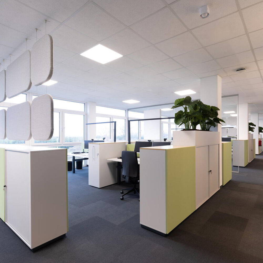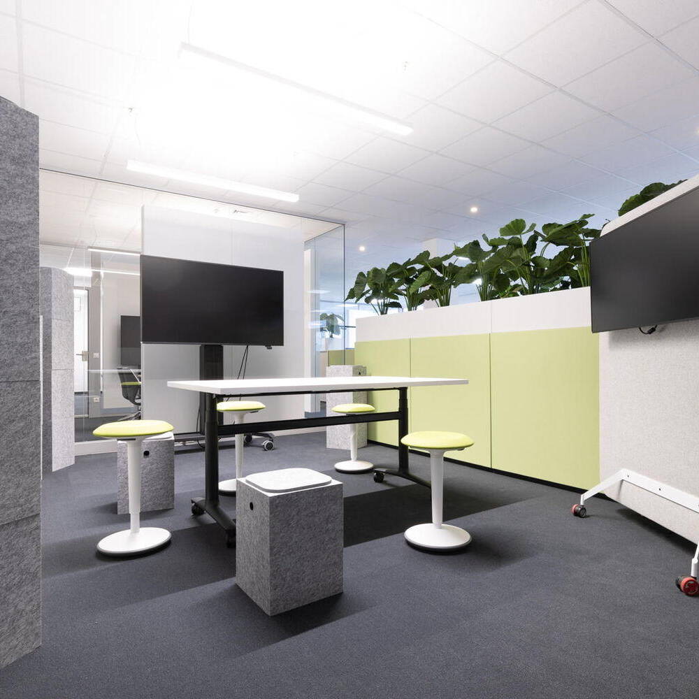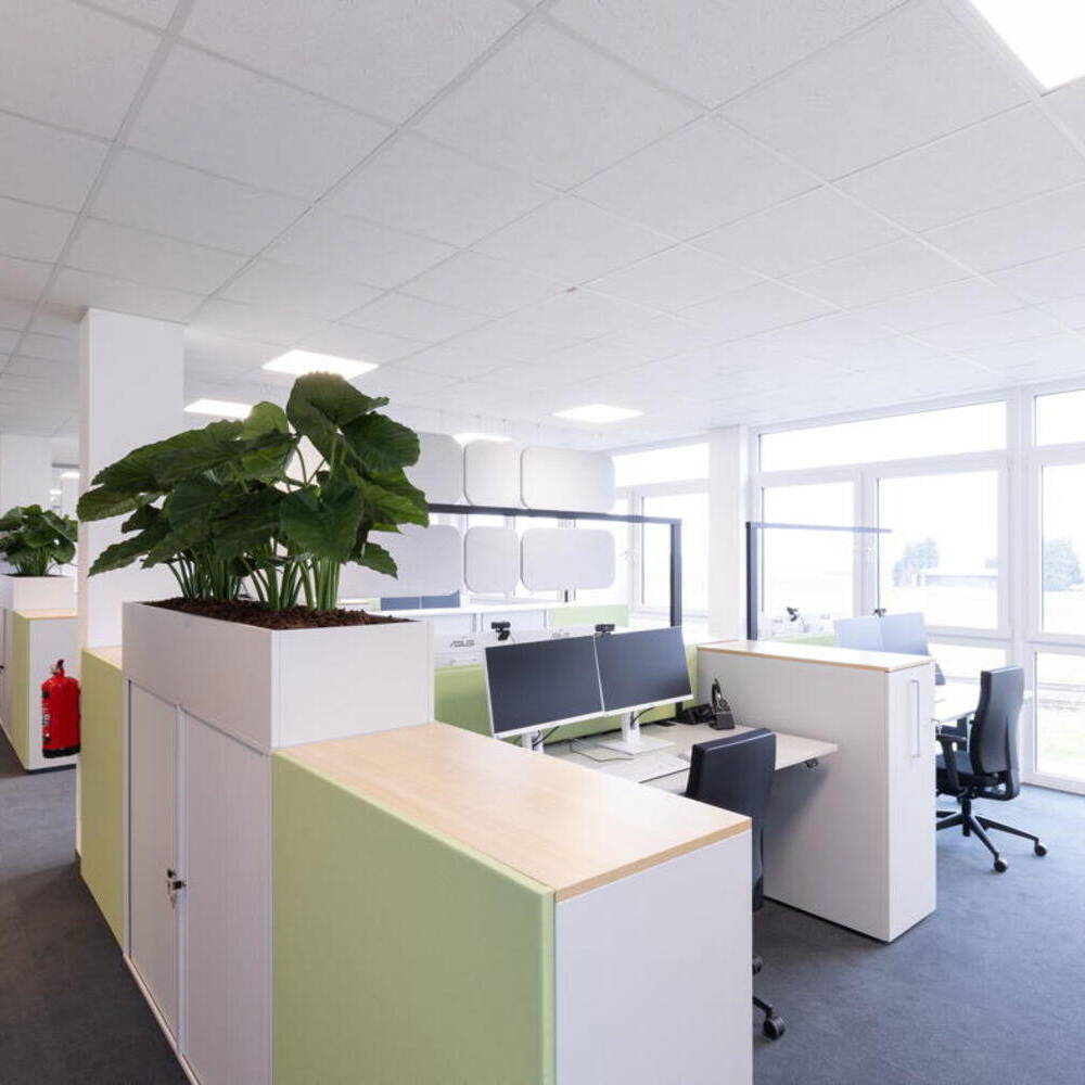 Durch das Zusammenspiel der verschiedenen Worksettings entstand eine Arbeitsumgebung mit Wohlfühlcharakter. „Aus unserer Sicht hat die Stadt Bornheim mit der Realisierung des Konzepts als eine der ersten kommunalen Verwaltungen historische Strukturen aufgebrochen“, sagt Adam und fügt hinzu: „Hier konnte etwas entstehen, das alles ist – nur kein klassisches Verwaltungsgebäude mit langen Fluren sowie Einzel- und Doppelbüros.“ Die Bornheimer Stadtverwaltung bezog eine Arbeitsumgebung, die durch eine offene Bürolandschaft geprägt ist. Diese wird durch transparente Glas-Akustik-Wände zoniert, wobei nur kleine Einzelbüros für die Amtsleitungen sowie zentrale Treffpunkte integriert sind. Das Konzept ist konsequent auf die Bedürfnisse der Mitarbeitenden und ihre Arbeitsweise ausgerichtet und fördert eine kollaborative und flexible Arbeitskultur.
