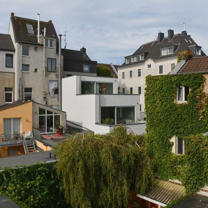 Ein Anbau in Ehrenfeld bietet urbanen Rückzugsraum mit viel Kontaktfläche