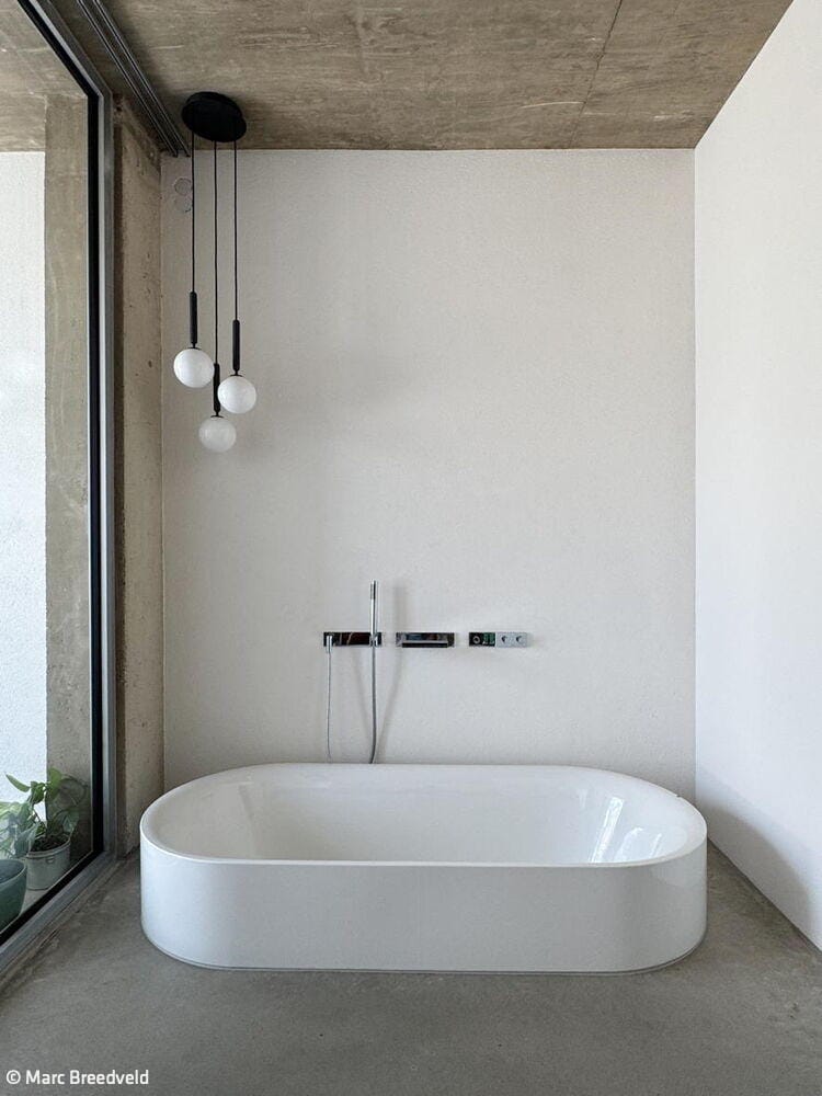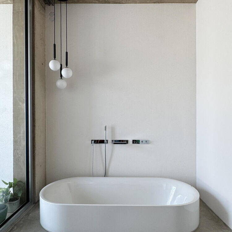 Sowohl die Materialität als auch die Konstruktion wirken roh, schnörkellos, funktional und auf das Wesentliche reduziert. Die raue Stahlbeton-skelettkonstruktion und eine im Erdgeschoss aus Abbruchziegeln des Altbaus wiedererrichtete Brandwand verweisen auf die Geschichte des Stadtteils, der im 19. Jahrhundert das Herz der Kölner Industrie darstellte. Zugleich kommt so der gestalterische Anspruch nach Reduktion und Einfachheit zum Ausdruck. Die Skelettkonstruktion – ausgesteift durch einen Stahlbetonkern mit Eingangsbereich und Bad und ausgefacht durch Mauerwerk – ermöglicht es zugleich, die Idee des offenen, stützenfreien Raumgefüges umzusetzen. Zudem konnten so die hohen Brandschutzanforderungen der Gebäudeklasse 4 erfüllt werden, die sich durch das Vorderhaus ergaben. Aber auch technisch setzt das Gebäude auf eine konsequente Reduktion: So wird die Fußbodenheizung über das Vorderhaus versorgt, auf Klimatisierung und Lüftungsanlagen wird ganz verzichtet. Betondecken dienen als Speichermassen und arbeiten in Kombination mit Nachtlüftung für ein angenehmes Raumklima – im Winter wie im Sommer. Ein BUS-basiertes Smart-Home-System ergänzt die Ausstattung und lässt Raum für künftige Erweiterungen.