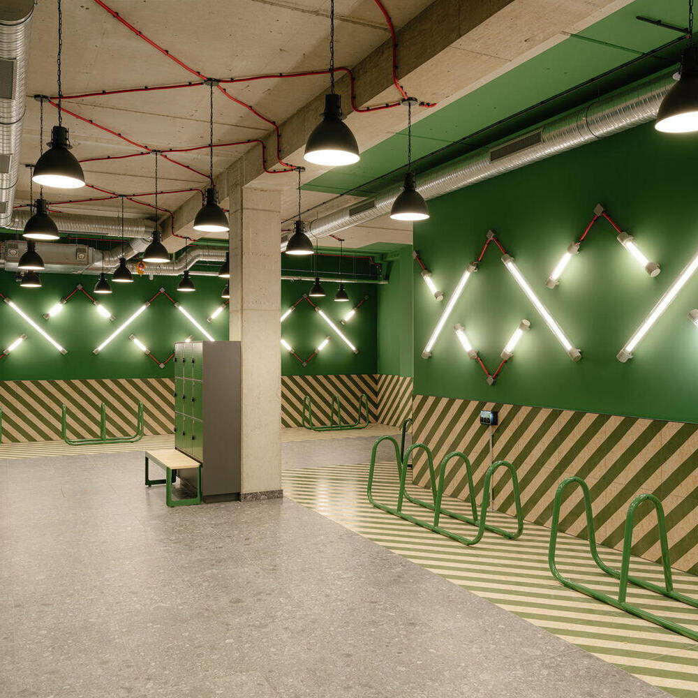 Der urbane Bürocampus Coco am Butzweilerhof verbindet moderne Neubauten mit Bestandsgebäuden zu über 30.000 m² hochwertigen Büroflächen. Kitzig Design Studios wurde von dem Eigentümer OSMAB Holding AG beauftragt, auf dem Multi-Tenant-Campus einen attraktiven gemeinschaftlich-öffentlichen Bereich zu schaffen, der die verschiedenen Gebäude miteinander verknüpft. Die Erdgeschossflächen bieten dabei verschiedene Serviceangebote für die Nutzung des Campus – sei es die durchgängig besetzte Rezeption, mehrere Konferenzräume oder aber auch den Direktzugang zum neuen Parkhaus.