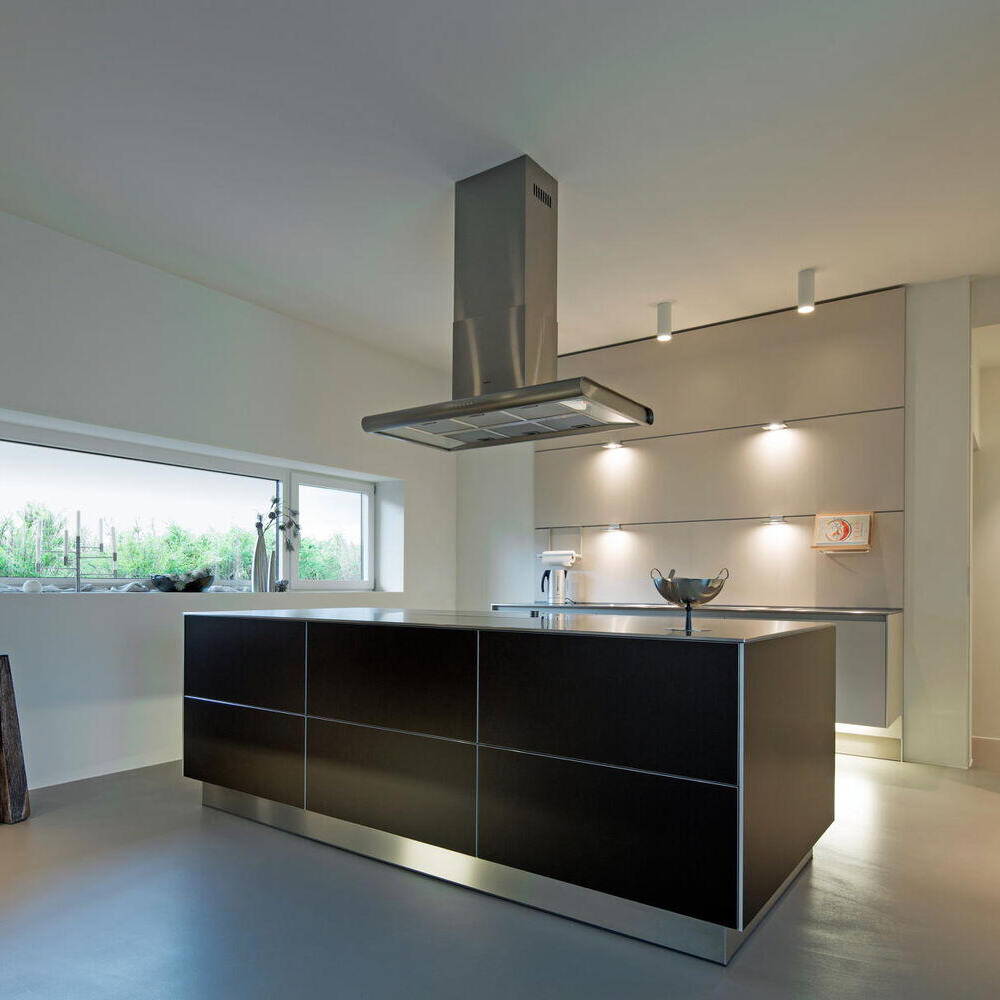 Auch technisch ist das Haus durchdacht. Eine Fußbodenheizung mit Wärmepumpe sorgt für angenehme Wärme, ohne große Temperaturschwankungen. Das Dachfläche wurde komplett genutzt, um Photovoltaik-Elemente unterzubringen. Die Bauherrenfamilie setzte konsequent auf Qualität und Regionalität: Sämtliche Gewerke wurden einzeln an örtliche Fachfirmen vergeben – eine Entscheidung, die sich in der handwerklichen Präzision des Hauses widerspiegelt. Nach einem Jahr Planung und einem weiteren Jahr Bauzeit konnte die fünfköpfige Familie ihr neues Zuhause beziehen, das ihr auf 400 m² Nutzfläche einen hochwertigen und zurückhaltend gestalteten Rahmen für das Leben in all seiner Buntheit bietet.