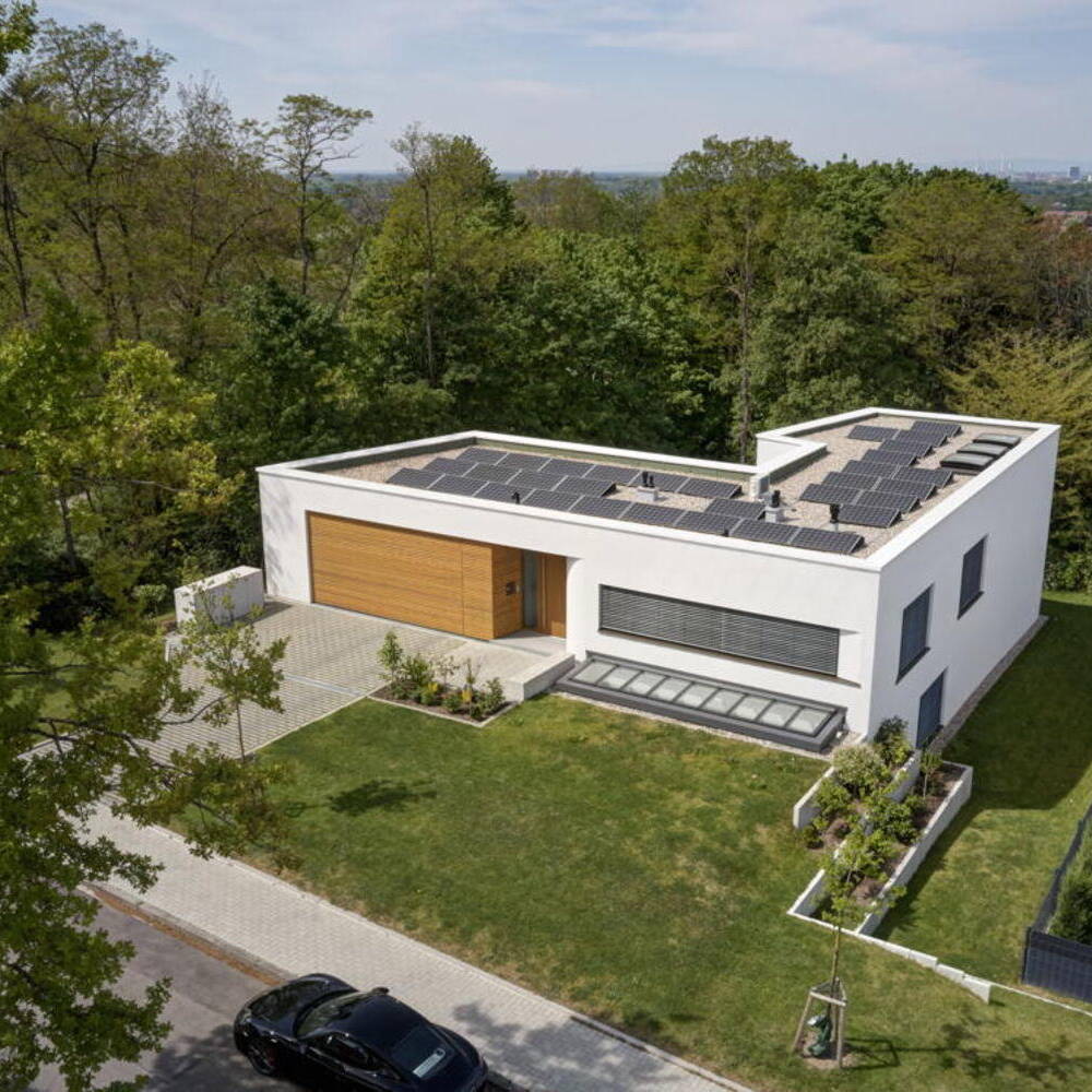 Auf einem prominenten Grundstück ein Zuhause zu schaffen, das sowohl Rückzug als auch Weite ermöglicht, war die zentrale Aufgabe für Baurmann.Dürr Architekten. Die Lösung: Ein skulpturaler L-förmiger Baukörper, der sich selbstbewusst und dennoch zurückhaltend in die Topografie einfügt. Statt sich – wie bei der umgebenden Bebauung – zur Rheinebene zu orientieren, wendet sich das Haus bewusst nach innen, hin zu einem geschützten Landschaftsraum. So entstand ein Ort, der den Bewohner:innen maximalen privaten Freiraum bietet.