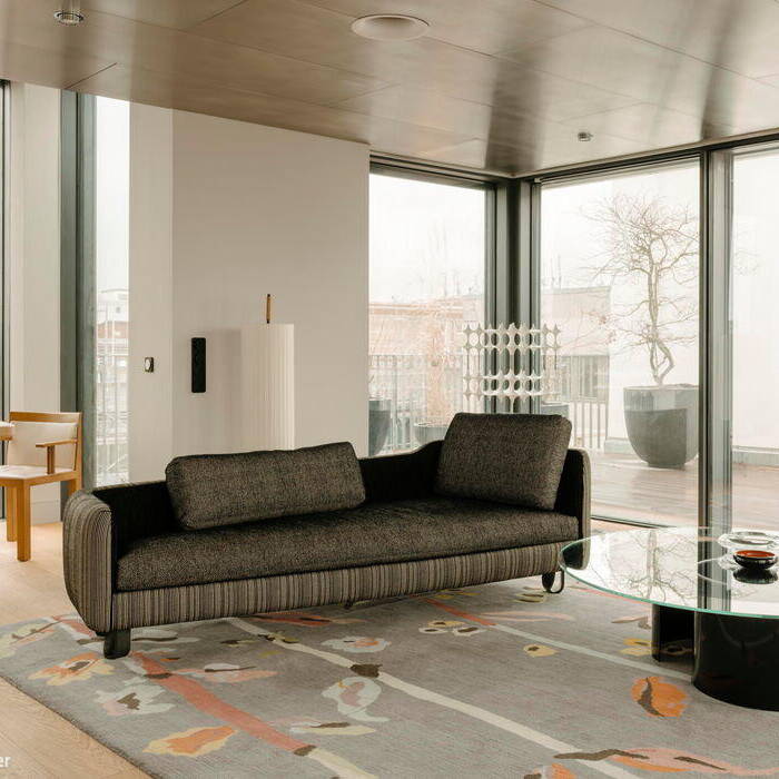 Die Penthäuser häufen sich in Berlin. Da es kein Bauland für Privathäuser gibt, finden die Eigenheime als Dachpavillons auf den Dächern des historischen Bestandes statt. Dieses großzüge Penthouse mit einer Wohnfläche von 160 m² sollte umgebaut und – samt Interieur – völlig neu gestaltet werden. Es bestand aus zahlreichen kleinen Räumen, die keine Offenheit oder gemeinschaftliches Beisammensein zuliessen.