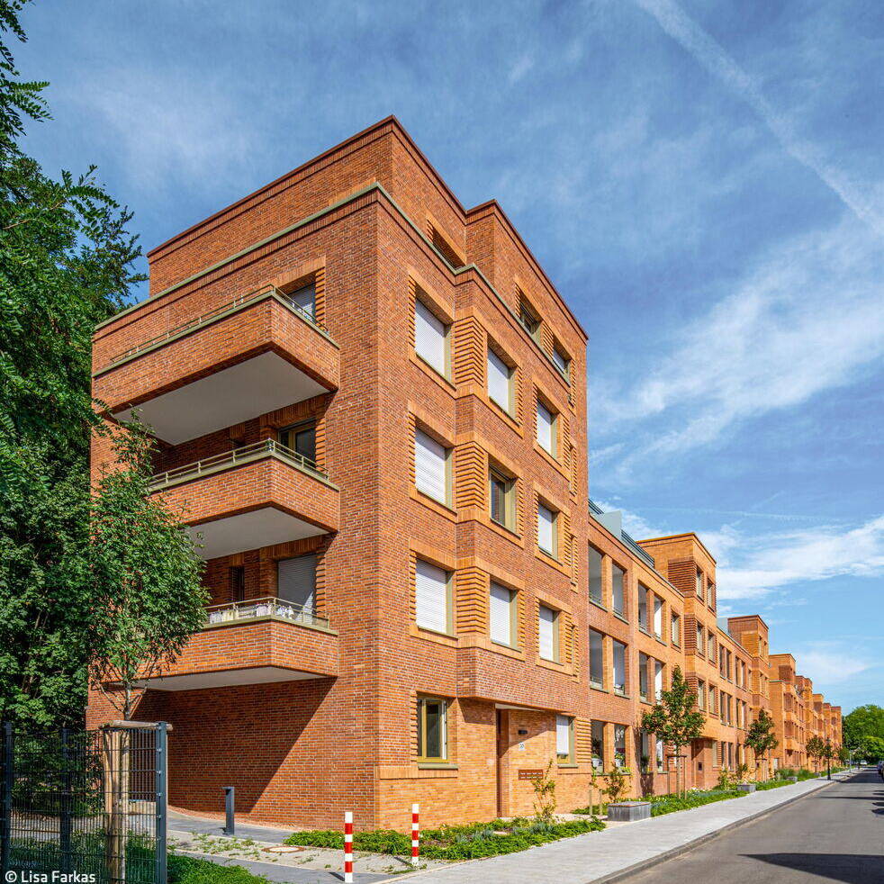 Der Großteil der 188 Wohnungen ist beidseitig orientiert und verfügt über Grundrisse, die für eine Vielzahl unterschiedlicher Haushalte geeignet sind: Die sieben Gebäudekörper mit Zwei-, Drei-, Vier- und Fünfzimmerwohnungen sind zwischen 37 und 112 m² groß und verfügen alle über einen Balkon, eine Loggia oder eine Gartenterrasse in den Erdgeschossen, die größtenteils einen Blick ins Grüne bieten. Zwölf Prozent der geplanten Wohneinheiten haben dabei echten Modellcharakter in puncto Nachhaltigkeit, ermöglichen sie doch CO₂-emissionsfreiem Betrieb zu einer attraktiven Teilinklusivmiete. Aber auch darüber hinaus leistet das Projekt einen wichtigen sozialen Beitrag: Mit einer freiwillig gewählten Quote von 36 Prozent öffentlich geförderter Wohnungen und 52 Prozent Wohnungen, die sich am preisgedämpften Mietpreis orientieren, setzt die Wohnbebauung in der Hagener Straße auch ein Zeichen für das bezahlbare Wohnen im angespannten Düsseldorfer Wohnungsmarkt.