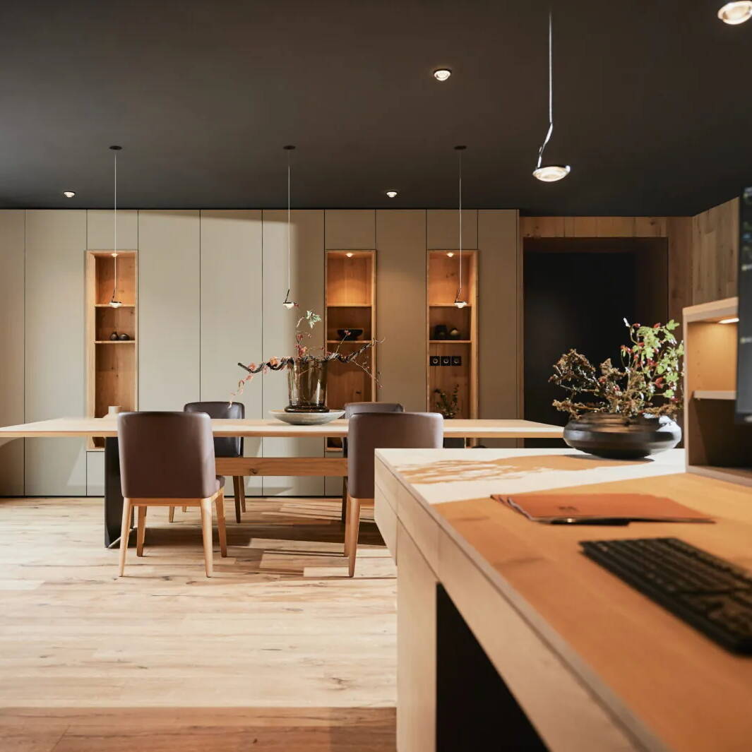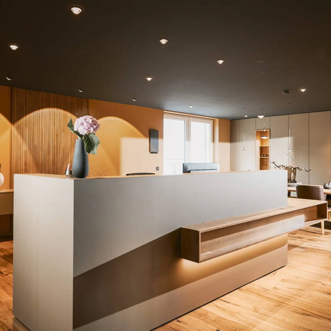 Bei jedem Schritt dieses Projekts haben wir unsere Leidenschaft für Design und Qualität eingebracht. Jedes Möbelstück in diesen Suiten wurde von uns gefertigt – von den stilvollen Teeküchen und Waschtisch-Anlagen bis hin zu gemütlichen Sitznischen und eleganten Esstischen. Besonderen Wert legten wir auf die Verwendung von hochwertigen, baubiologisch abgesegneten Materialien. Unsere Auswahl an natürlichen und nachhaltigen Materialien gewährleistet nicht nur eine luxuriöse Ästhetik, sondern fördert auch das Wohlbefinden der Patienten.