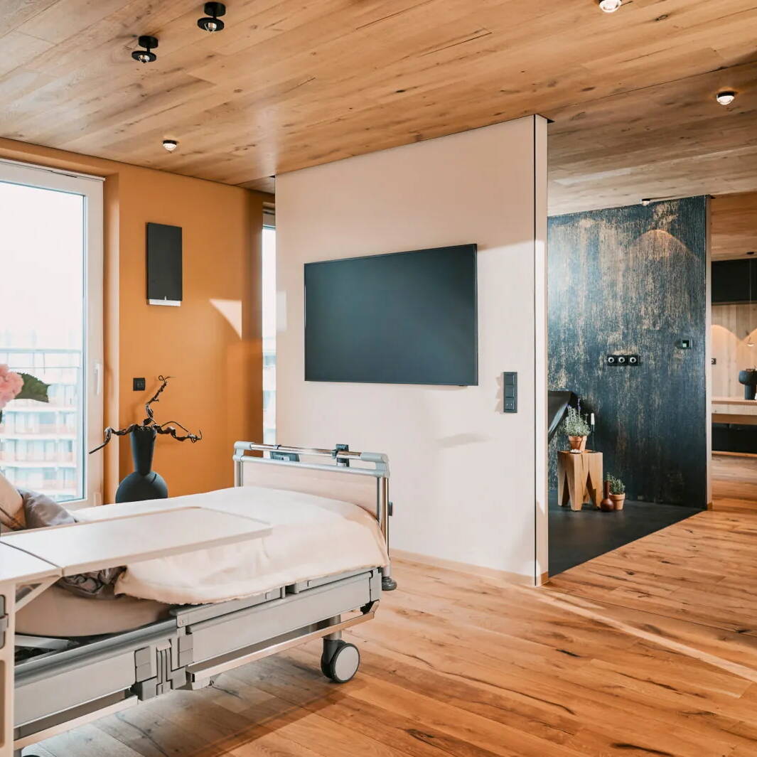 Die Penthouse Suiten der Intensivstation sind ein Zeugnis unserer Fähigkeit, luxuriöse Ansprüche mit den Anforderungen moderner Medizin zu vereinen. Wir haben einen Raum geschaffen, in dem sich Patienten nicht wie in einem Krankenhaus, sondern wie in einem erholsamen Urlaub fühlen. Durch die Kombination aus komfortablem Design, hochwertigen Materialien und einer harmonischen Atmosphäre bieten wir ein unvergleichliches Patientenerlebnis, das Heilung und Entspannung unterstützt.