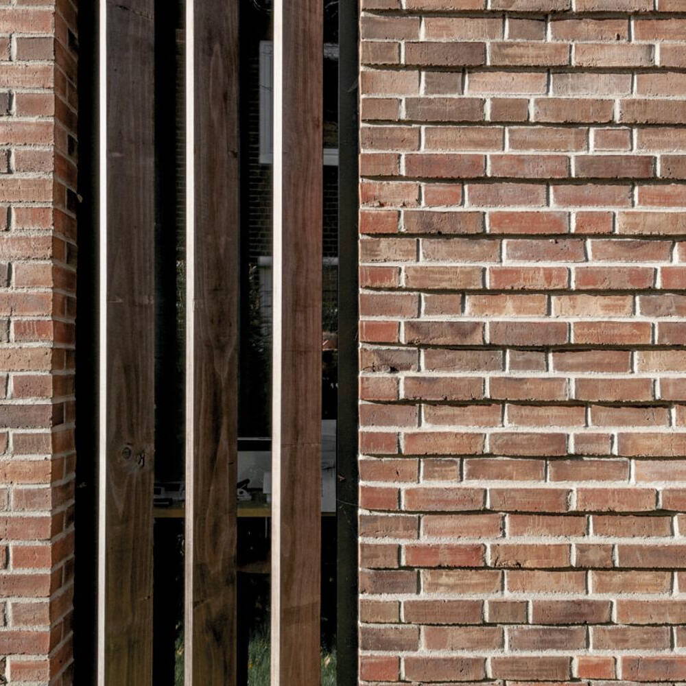 Das Team von Bub Architekten BDA entwarf das neue Wohnhaus als moderne Interpretation der benachbarten Giebelhäuser. Es fügt sich mit seiner Kubatur, Materialität und Formensprache in die Umgebung mit denkmalgeschützten Gebäuden ein, ohne auf eine eigene Identität zu verzichten. Das leicht vorspringende Sockelgeschoss setzt sich durch das Lisenenmauerwerk von den oberen Geschossen ab. Im lebendigen Farbenspiel der Ziegel finden sich die dunklen Brauntöne und das Orangerot der Nachbarbebauung wieder. Die Gestaltung als Lochfassade erfüllt zugleich die Vorgaben der Stadtplanung, die das Maß der Öffnungen begrenzte und vertikale Fensterformate forderte, und den Wunsch der Bauherrschaft nach großzügigen Ausblicken.