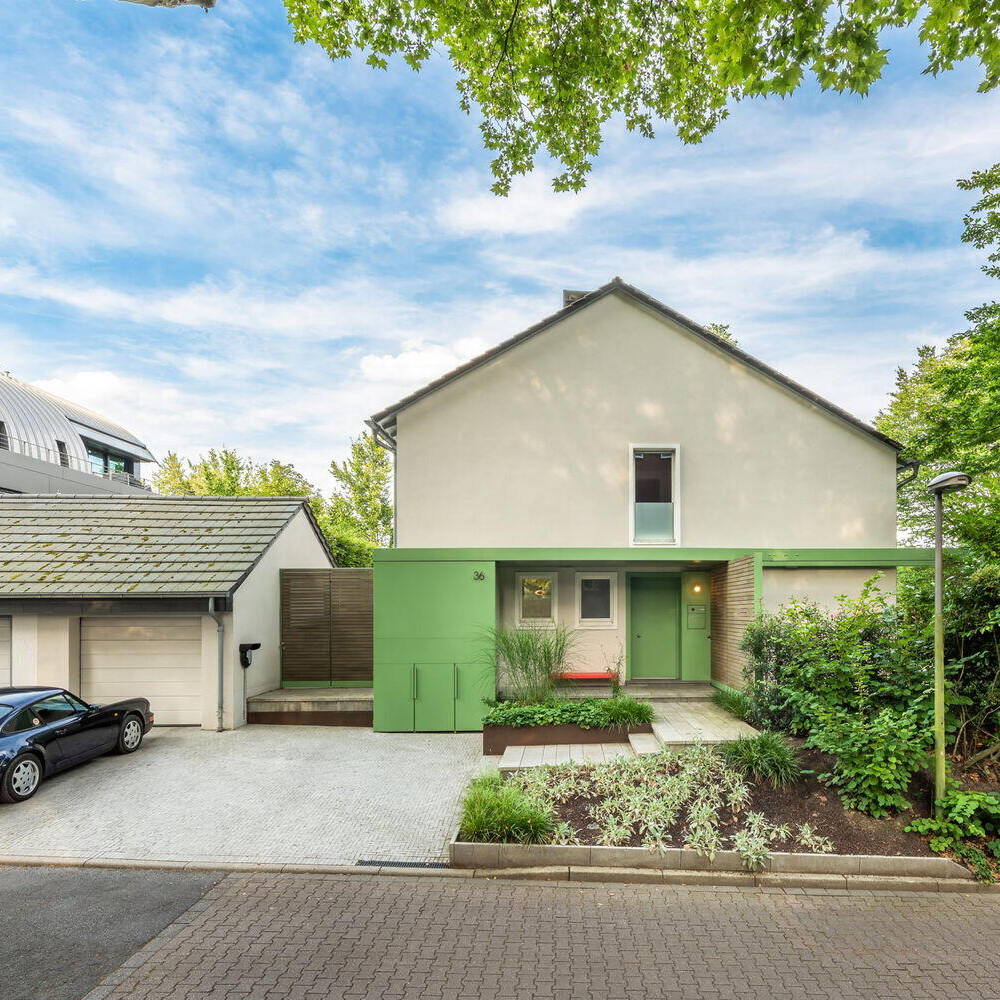 Erwirbt jemand ein Bestandsgebäude, wird zunächst meist alle Energie in den Wohnraum gesteckt, um eigene Vorstellungen vom Wohnen und erforderliche Modernisierungen umzusetzen. So erging es auch den Besitzern eines Einfamilienhauses in Bochum. Sie modernisierten ihr Haus, das die selbstbewusste Architektursprache der 1950er-Jahre widerspiegelt, und nahmen kleinere Grundrissänderungen vor. Die Fassade des Gebäudes blieb derweil unverändert, und der Garten mit einer zu kleinen und unebenen Terrasse sowie abfallenden Geländehöhen wurde nur pflegerischen Maßnahmen unterzogen. Bis nach gut zehn Jahren auch die Stunde des Gartens schlagen sollte.