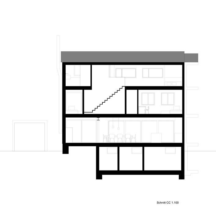 In dieser Wohnsiedlung aus den 1930er-Jahren befinden sich mehrere Doppelhäuser eines bestimmten Typus: Zur Straße hin wirken sie durch ihre eingeschossige Bauweise eher klein, dafür öffnen sie sich zur Gartenseite. Ein Erker, großzügige Fenster und eine zweite Etage bieten von den Wohn- und Schlafräumen aus einen direkten Blick auf die idyllische Gartenlandschaft. Funktionale Bereiche wie Küche, Badezimmer und Erschließung sind hingegen auf der Nordseite untergebracht. Eine der Doppelhaushälften – bereits in die Jahre gekommen und schon mehrfach umgebaut – sollte nun zum neuen Zuhause einer fünfköpfigen Familie umgestaltet und modernisiert werden.