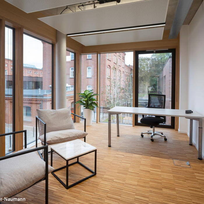 Aufzüge, Treppen, Türen und Flure zeichnen sich durch eine zurückhaltende, sehr geschmackvolle Gestaltung aus. Die Räume haben eine einladende Atmosphäre und animieren förmlich zum Studieren. Die umfangreiche technische Ausstattung mit akustisch wirksamen Deckensegeln zum Heizen und Kühlen, ergänzt durch eine hochwertige Beleuchtung und Medientechnik, ermöglicht eine optimale Nutzung des Gebäudes. Überraschend ist die Nutzung des kleineren Pavillons VI. Hier wurde das Ambiente einer psychologischen Arztpraxis simuliert – stimmig vom Empfangstresen bis zum Sprechzimmer. Diese „Hochschul-Ambulanz“ dient der praxisnahen Ausbildung der Psychologiestudierenden. Im Herbst 2023 konnten die Pavillons dem Lehrbetrieb übergeben werden.