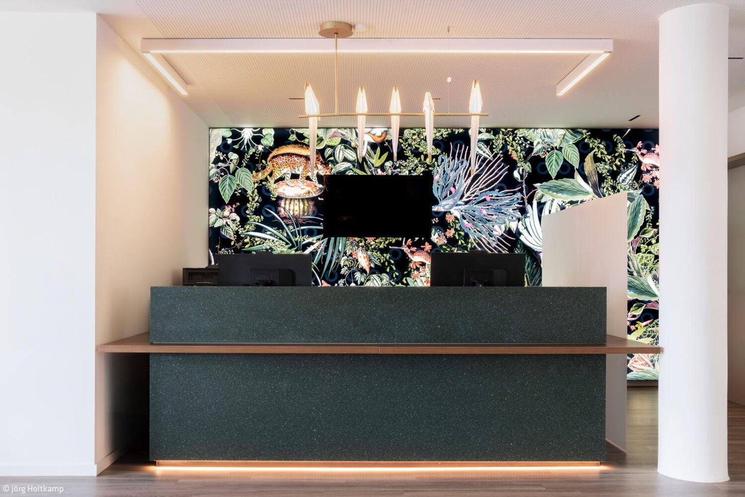 Flexibilität ist das Schlagwort unserer Zeit und ein wichtiger Bestandteil des New-Work-Konzepts. Dabei sind in Sachen Anpassungsfähigkeit und Mobilität nicht nur die Mitarbeiter gefordert, sondern auch (Innen-)Architekten und Planer. Schließlich fangen wandelbare Büroflächen schon bei der Planung des Grundrisses an. Unter der Prämisse hohe Flexibilität wurde auch das Bürogebäude Enter vom Investor, Entwickler und Bauherr Townscape realisiert. Ziel war es, eine Bürowelt zu erzeugen, die den Nutzern nicht nur einen festen Arbeitsplatz bietet, sondern verschiedenste Szenarien ermöglicht, die ganz nach Bedarf, Aufgabe und Teamkonstellation bespielt werden können. Im Fokus stand dabei die Entwicklung attraktiver Flächen, die sich gemeinschaftlich nutzen lassen und auch Raum für größere Zusammenkünfte bieten.