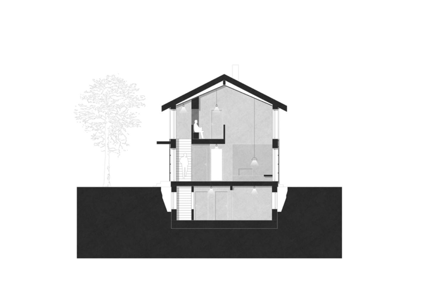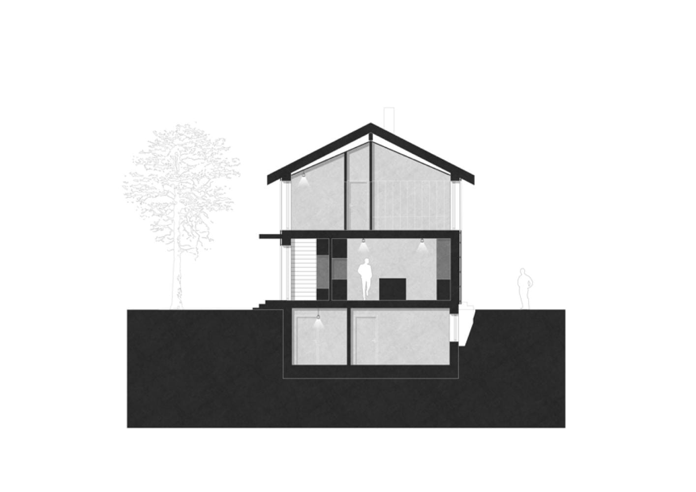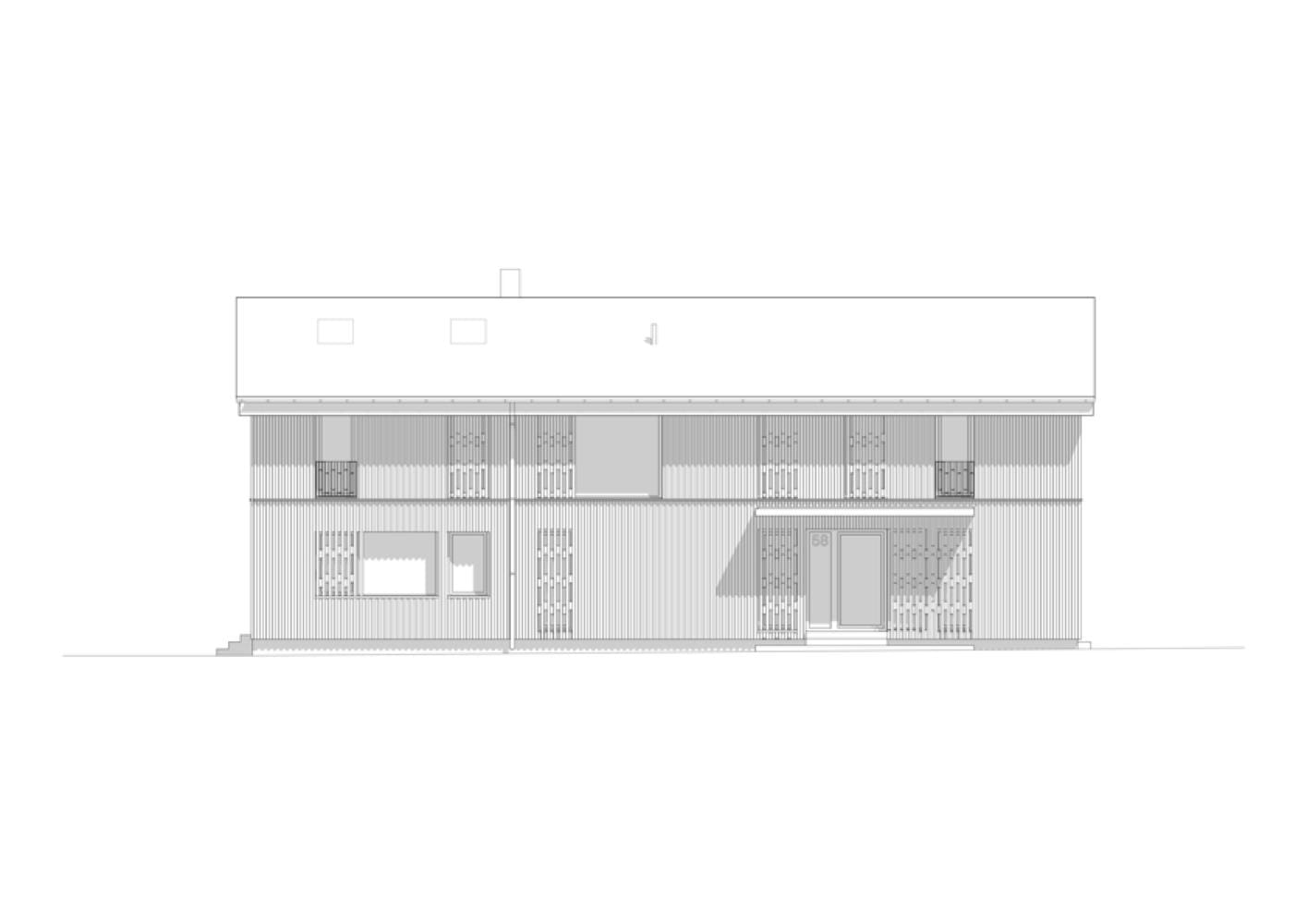 Das Grundstück befindet sich in ruhiger Randlage in Holzkirchen. Der langgestreckte Baukörper des neuen Einfamilienhauses öffnet sich nach Süden zu einer großzügigen Terrasse. Die Fassade aus unbehandelter heimischer Lärche wird durch eine vertikale Lattenstruktur gegliedert, die sich zum Teil auch über die Fensterflächen erstreckt und an einigen Stellen durch eine virtuos-ornamentale Gestaltung einzelner Fassadenteile unterbrochen wird. Diese durchbrochenen Flächen beleben den Gesamteindruck. Sie dienen nicht nur der optischen Auflockerung, sondern fungieren auch als Sicht- und Sonnenschutz. Kleine Holzbretter – sogenannte Opferbrettchen – verdecken die horizontale Unterkonstruktion und verweisen auf die handwerkliche Tradition der Region. Die Verwendung von leimfreiem Massivholz und die Vorfertigung einzelner Teile trugen dazu bei, die Bauzeit deutlich zu reduzieren, wobei das massive Fichtenholz im fertigen Zustand nicht mehr zu spüren ist – das Haus wirkt leicht und luftig. Das durchdachte Grundrisskonzept schafft großzügige Wohnräume. Der Eingangsbereich und die Nebenräume sind kompakt im Westen angeordnet. Der übrige Bereich des Erdgeschosses besitzt einen offenen Grundriss und lässt viel Raum für den Küchen-, Ess- und Wohnbereich. Die zeitgemäßen anthrazitfarbenen Kücheneinbauten stehen im Kontrast zum äußeren Erscheinungsbild eines traditionellen oberbayerischen Holzhauses. Ein grauer Estrich geht in einen Holzfußboden aus Eiche über. Lehmputz an einigen ausgewählten Wandflächen sorgt für ein gesundes Raumklima und schafft eine warme Atmosphäre. Über dem Ess- und Wohnraum öffnet sich ein Luftraum bis zum First, der Weite schafft und den Raum atmen lässt. Die Treppe zum Obergeschoss führt zu einer Galerie und den Schlafräumen mit angrenzendem Bad. Der Entwurf verbindet regionale Bautradition mit zeitgemäßer Wohnqualität und nachhaltiger Bauweise.