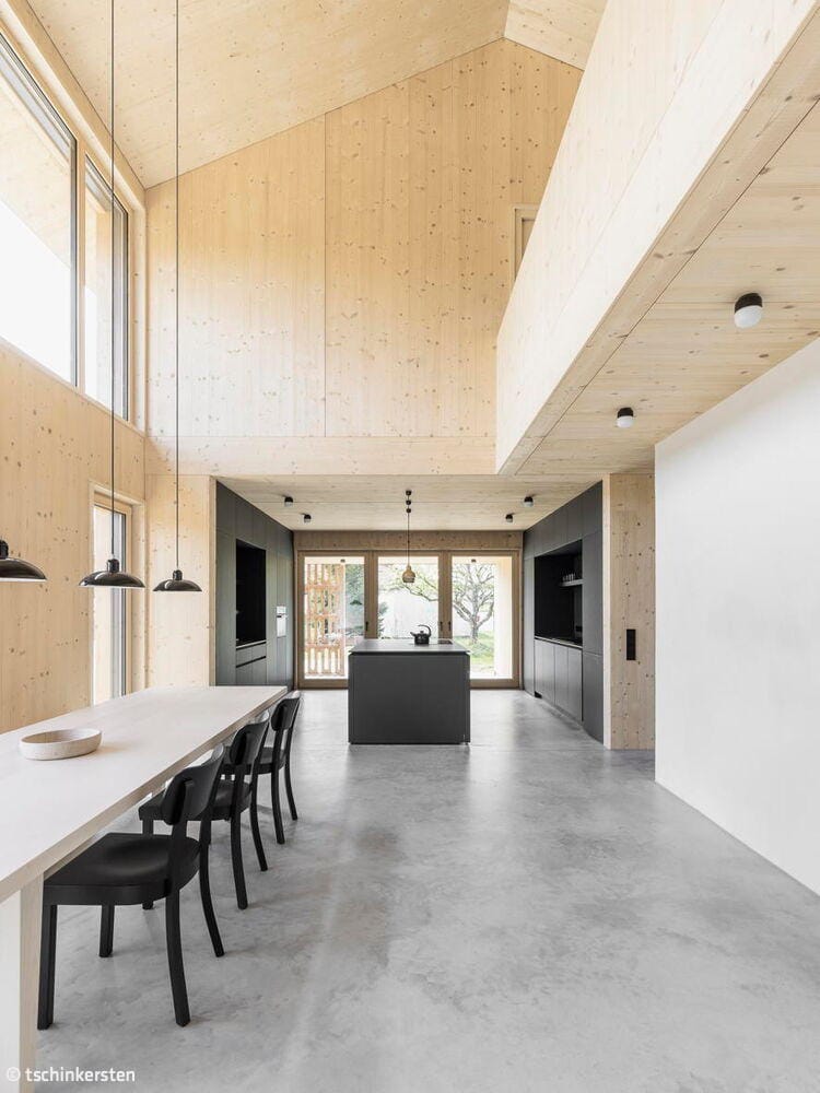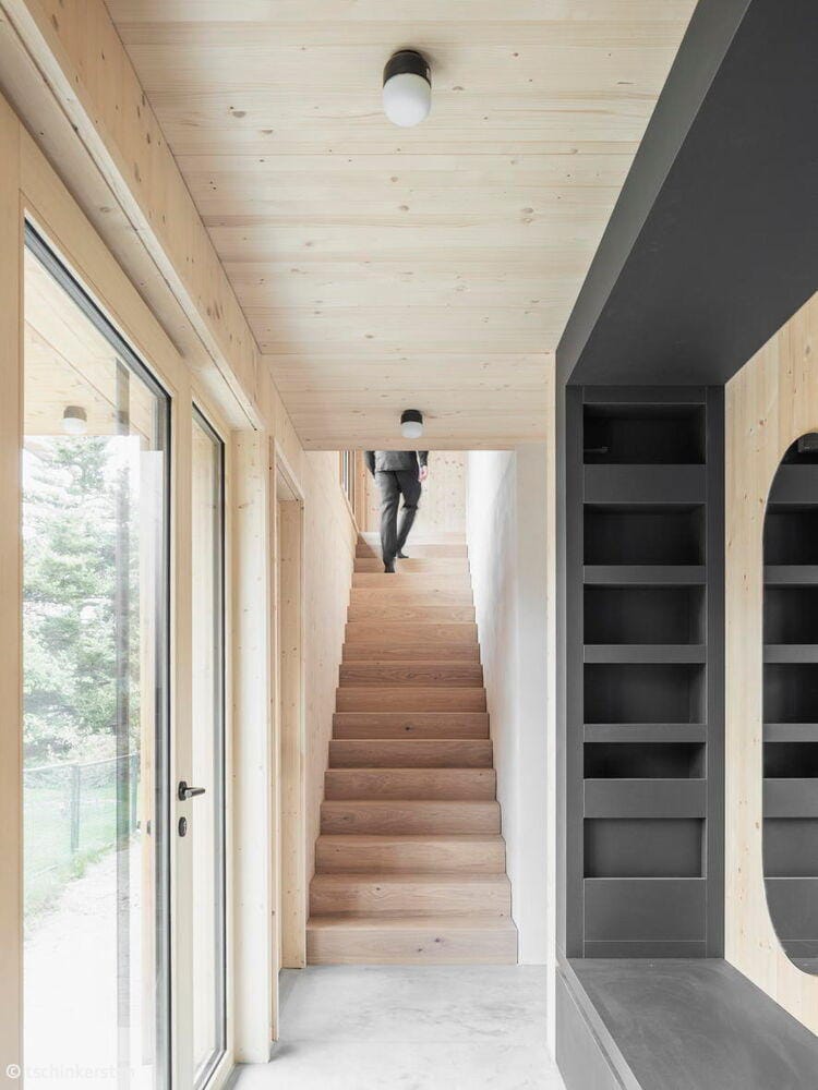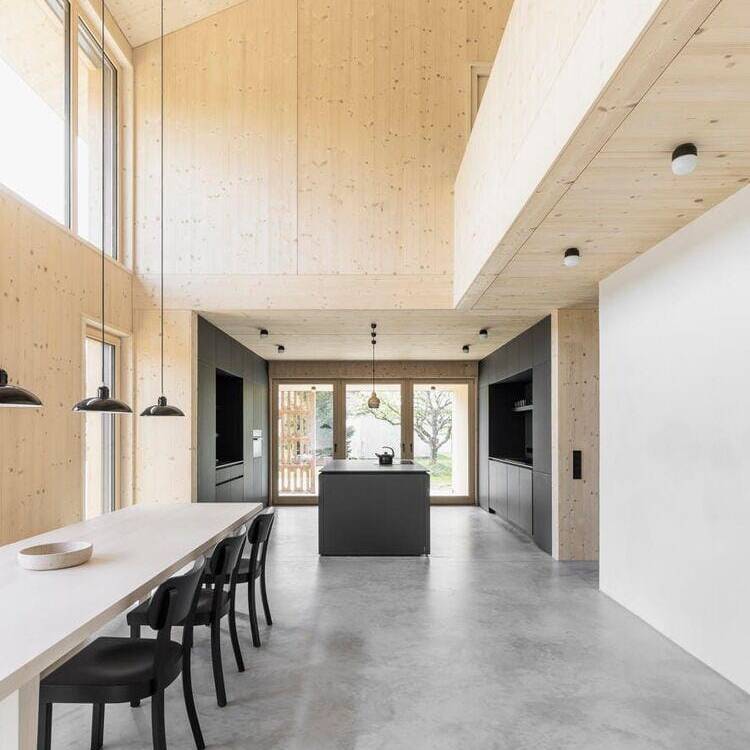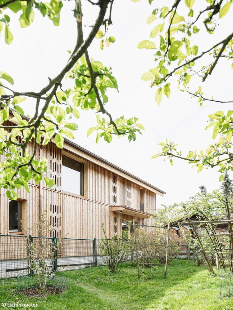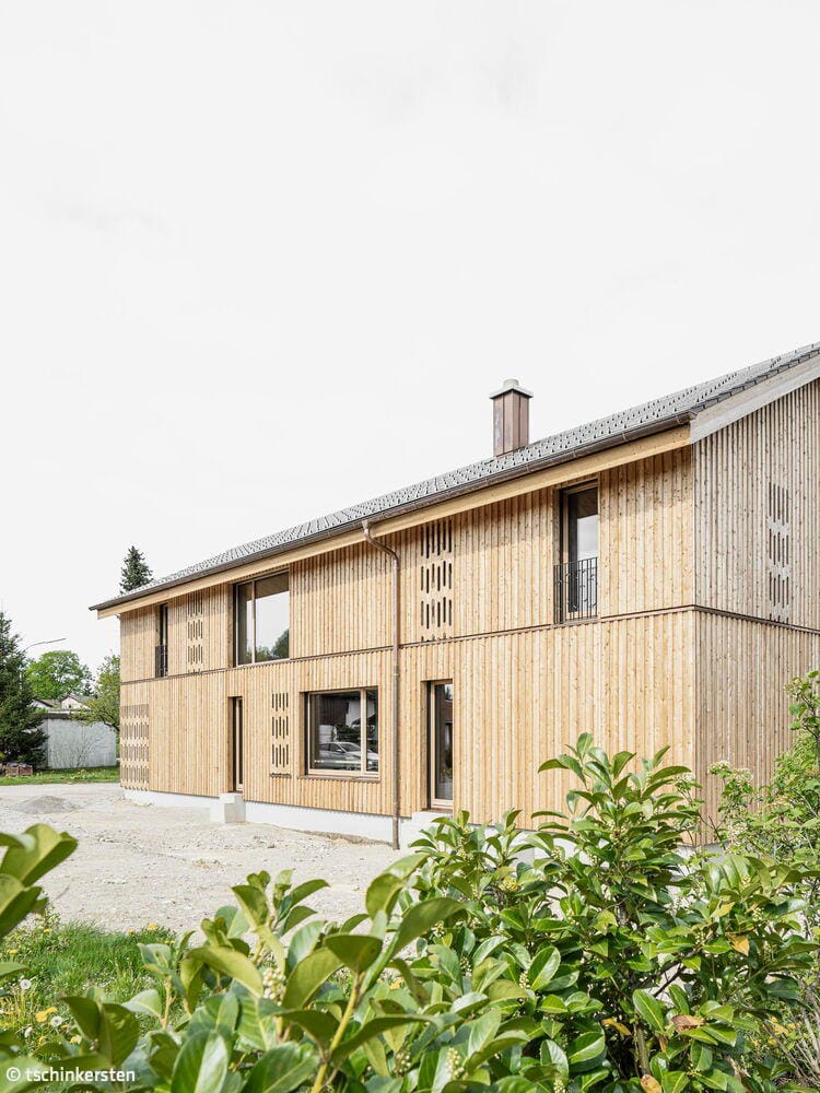 Im Jahr 2024 wurde zum sechsten Mal der alle vier Jahre verliehene Rosenheimer Holzbaupreis vergeben. In der Kategorie „Wohnen“ erreichte ein Massivholzhaus den zweiten Platz der Publikumspreise. Der Entwurf stammt vom Architekturbüro dreigegeneinen, mit Standorten in München und Berlin. In enger Abstimmung mit dem Bauherrn entstand ein Wohnhaus, das sich sensibel in die umgebende Kulturlandschaft aus gewachsenen Strukturen einfügt. Das Gebäude zeigt eine klare Formensprache, setzt auf natürliche Materialien und ist stark im Ort verankert. Die Wahl des Publikums deutet darauf hin, dass die Außenwirkung des Wohnobjekts besonders ansprechend und praxisnah ist. Die Materialität eines Holzhauses vermittelt Vertrauen: Es wirkt solide, ohne prätentiös zu sein.
