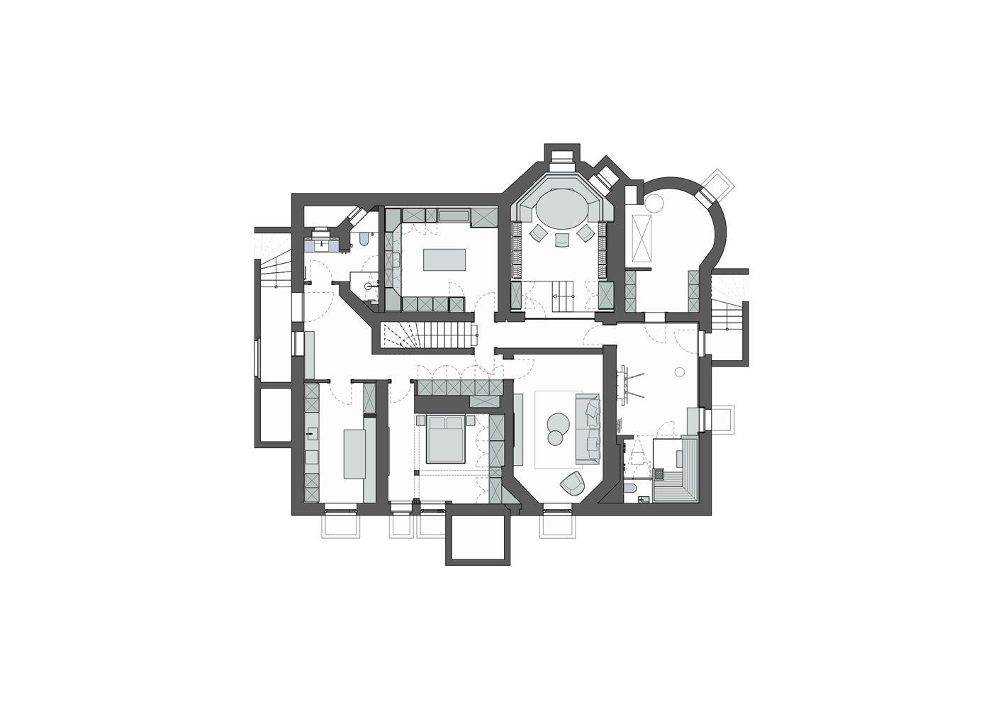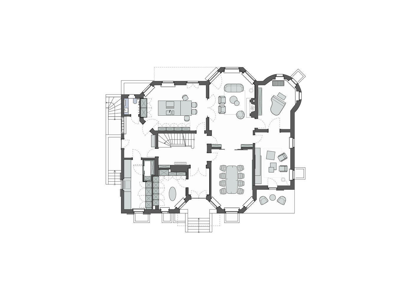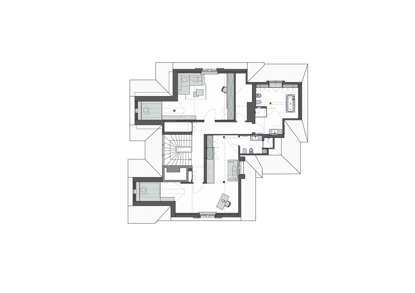 Vogelgezwitscher, leises Rauschen der hohen Baumkronen und Jahrhundertwende-Charme. Wer heute durch dieses Villenviertel spaziert, ahnt, warum sich um 1900 das wohlhabende Bürgertum hier niederließ. Auch ein ehemaliges Jagdhaus ist ein Zeugnis dieser Epoche. Schmidt Holzinger Innenarchitekten nahmen sich der Aufgabe an, sein großbürgerliches Erbe zu bewahren und gleichzeitig ein Zuhause für eine vierköpfige Familie zu schaffen. Die Bauherren, Liebhaber prachtvoller Villen und Oldtimer, träumten von einem Haus, das die Tradition ehrt und zugleich Designqualität und Komfort der Gegenwart verkörpert.