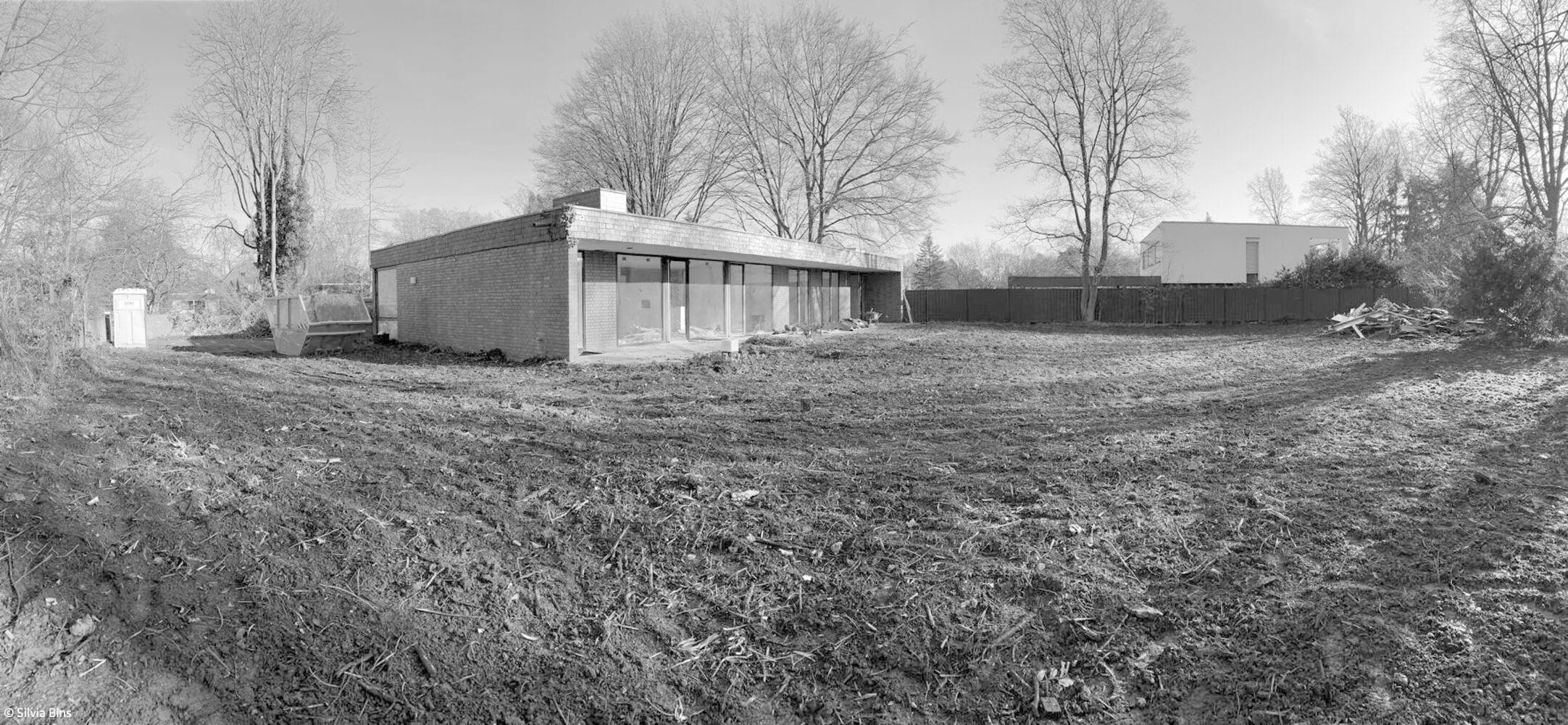 Der ursprüngliche Bungalow war Teil eines Ensembles von fünf Häusern, die der Kölner Architekt Hans Kröber in den 1960er-Jahren geplant hat. Die Bauherren legten besonderen Wert auf eine nachhaltige Erweiterung, die keine weiteren Flächen versiegeln sollte und gleichzeitig hohen energetischen Standards entspricht. Entsprechend erfolgte der Umbau dahingehend, dass zunächst das konstruktive Grundgerüst des Bestandsgebäudes aus Beton freigelegt wurde. Anschließend wurde die Tragstruktur mit einer Leichtbaukonstruktion aus Stahl und Holz ergänzt. Geschickt wurde dazu eine zwischen zwei Wandscheiben eingespannte geradläufige Treppe ergänzt. Ein Highlight ist die Beibehaltung des weiten auskragenden Daches nach Süden, das im Obergeschoss eine großzügige, überdachte Terrassennutzung erlaubt – mit baulich wirksamem Sonnenschutz und eindrucksvollen Ausblicken in den Garten. Die nördliche Fassade wurde bewusst minimal gestaltet, mit nur den notwendigsten Fenstern, um Wärmeverluste zu minimieren. Ihren Ausdruck erhält die Fassade zudem durch die spannungsvolle Materialität von Mineralputz, Klinker- und den Glasflächen, die von Aluminiumrahmen gefasst werden. Während sich im Erdgeschoss Entrée, Garderobe, Küche und der Anbau einer Doppelgarage nach Norden orientieren, öffnet sich der großzügige Wohn- und Essbereich mit raumhohen Schiebefensterfronten nach Süden zum Garten und einem neu angeordneten Kamin.