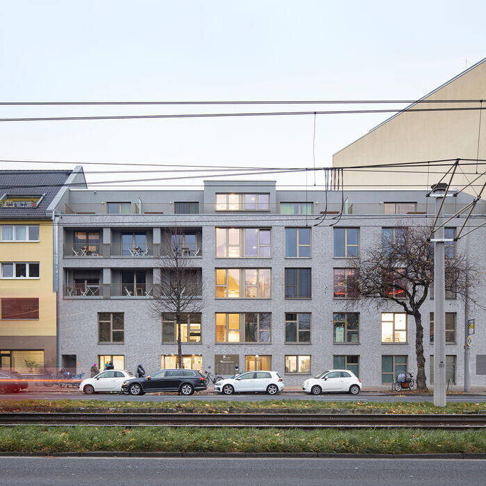 Ein Grundstück westlich des Melaten-Friedhofs beherbergte ehemals eine Tankstelle. Das Kölner Büro Nebel Pössl Architekten schließt die Lücke in der geschlossenen Blockbebauung durch einen dreigeschossigen Neubau mit zusätzlichem Staffelgeschoss. Das Gebäude, das zwischen Straße und Blockinnenhof vermittelt, strahlt Urbanität und Ruhe zugleich aus.