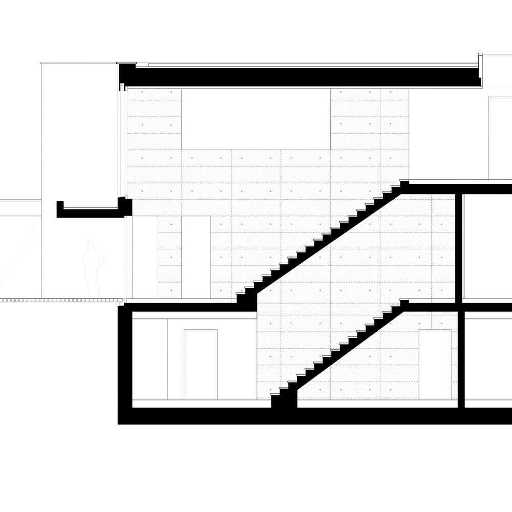 Die Vorderfront des Hauses ist als klassische Lochfassade ausgebildet. Bewusst zurückhaltend gesetzten Fensteröffnungen verleihen dem Gebäude einen fast schon verschlossenen Charakter. Als Kontrast hierzu öffnet sich das Haus gartenseitig über die gesamte Breite der Wohnräume, mit einer großflächigen, raumhohen Fensterfront, im wahrsten Sinn des Wortes ins Grüne. Sichtbeton bestimmte auch im Innern die Gestaltung. Aufgrund seiner Klarheit und elegant-noblen Wirkung gehörte es zum Entwurf, das Material der Wahl bewußt als sinnlich erfahrbares Gestaltungselement einzusetzen. Zentral im Haus angeordnet, erstreckt es sich über alle Geschosse und integriert als Kern auch Treppen und den Kamin im Erdgeschoss. Die Verteilung der Räume folgt dem klassischen Muster: Im Anschluss an einen zweigeschossigen Eingangsbereich folgt der halböffentliche Bereich mit Kochen, Essen und Entspannen in einer Polsterlandschaft. Die privaten Räume liegen im Obergeschoss – das Elternschlafzimmer mit Masterbad und Ankleide sowie die Kinderzimmer, ebenfalls mit Bad. Die Energieversorgung und Heizung werden zu einem großen Teil durch Geothermie und eine Grundwasser-Wärmepumpe gewährleistet. Das Projekt nahm inklusive Planung und Realisierung insgesamt drei Jahre in Anspruch. Da nur eine schmale Zufahrt von knapp drei Metern auf das rückwärtige Grundstück führte, bedeutete das gewisse Schwierigkeiten für das Baugeschehen, die jedoch erfolgreich gemeistert werden konnten.