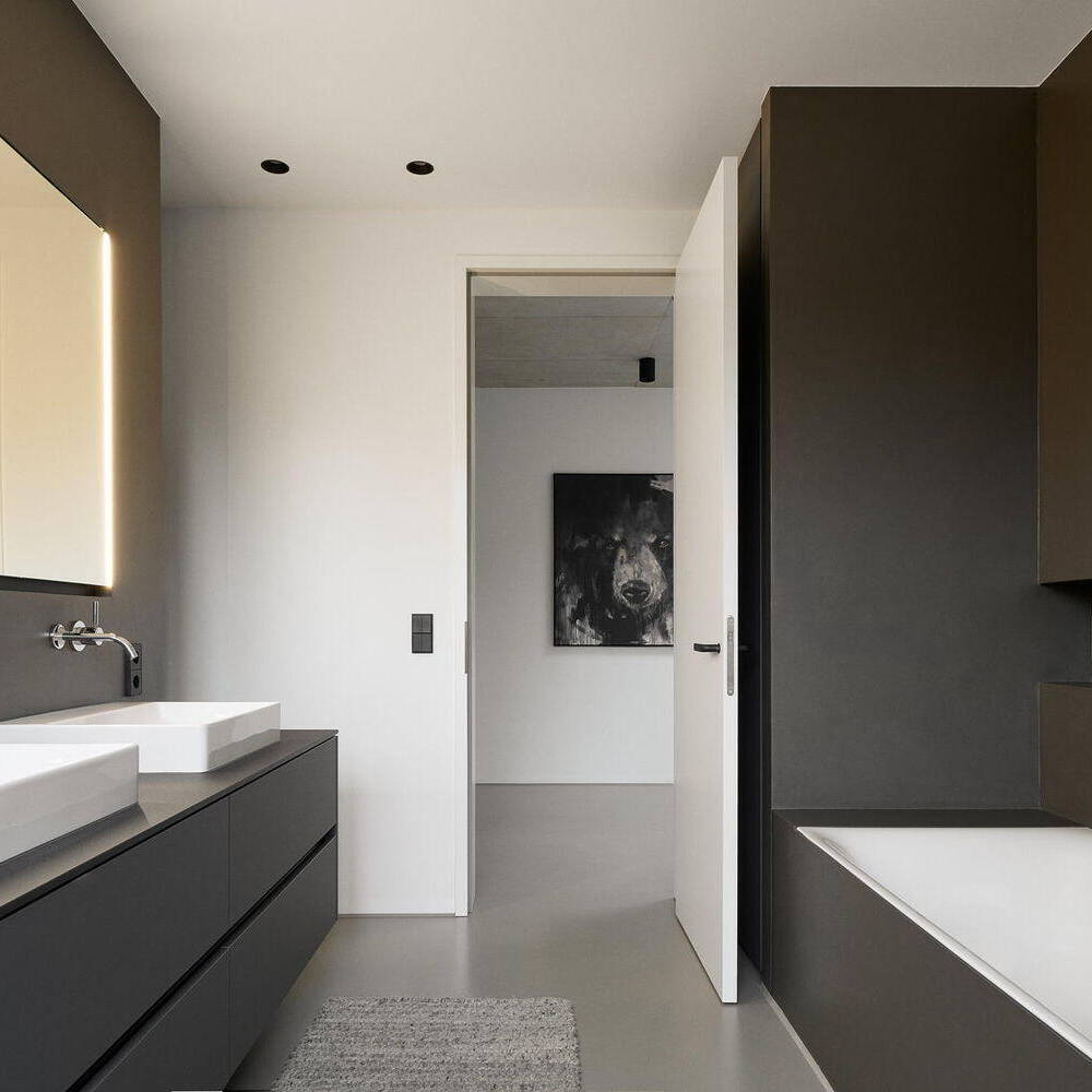 Im stark nachverdichteten Obermenzing macht diese zeitlos moderne Villa mit ausdrucksstarker Kubatur auf sich aufmerksam. Das neue Zuhause für eine Familie, auf einem Grundstück in geborgener Lage in zweiter Reihe gelegen, zeichnet sich durch eine zurückhaltende Material- und Formensprache aus. Als Baumaterial hatten die Bauherren von Anbeginn an Beton favorisiert. Das Münchner Architekturbüro Hartman setzte dieses im Rahmen eines Direktauftrags sinnlich in Szene, so wie es sich die Bauherrschaft gewünscht hatte.
