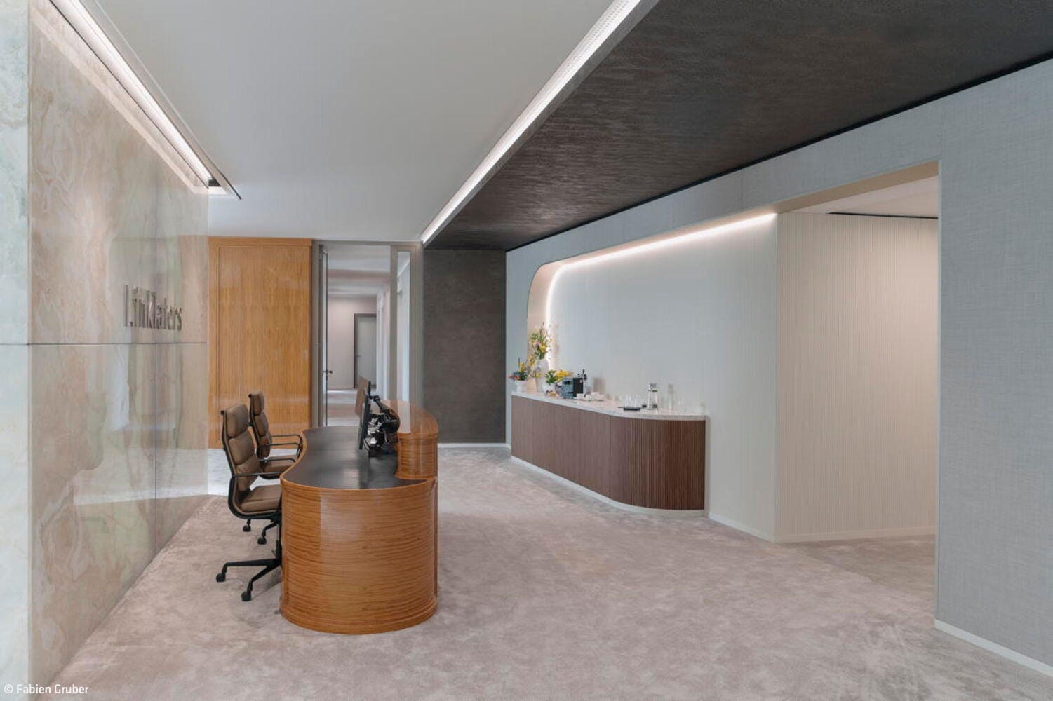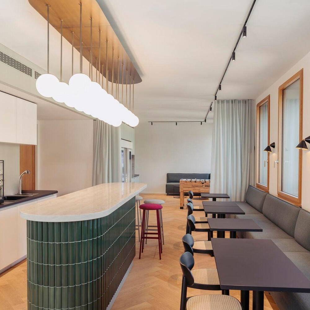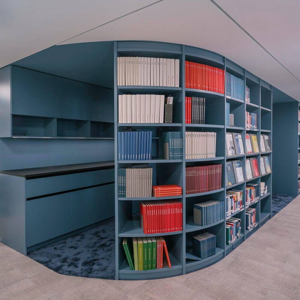 Berlin ist bereits die vierte Niederlassung der renommierten Kanzlei, die das Architektenteam mit einem modernen Office-Konzept ausstattete. Der Umbau erfolgte in zwei Bauabschnitten während des laufenden Betriebs – eine sowohl planerische als auch organisatorische Herausforderung, die vor allem durch eine sensible Abstimmung und präzise Koordination gemeistert wurde. Entstanden ist ein räumliches Narrativ, das sich wie ein roter Faden durch das gesamte Büro zieht: Vergangenheit, Gegenwart und Zukunft begegnen sich hier nicht nur konzeptionell, sondern im realen Raum. Die Ästhetik der klassisch-modern angelehnten Kollhoff-Architektur blieb erhalten; sie wird durch eine zukunftsweisende Raumneuordnung erweitert und subtil in die Corporate Identity der Bauherrschaft eingebettet.