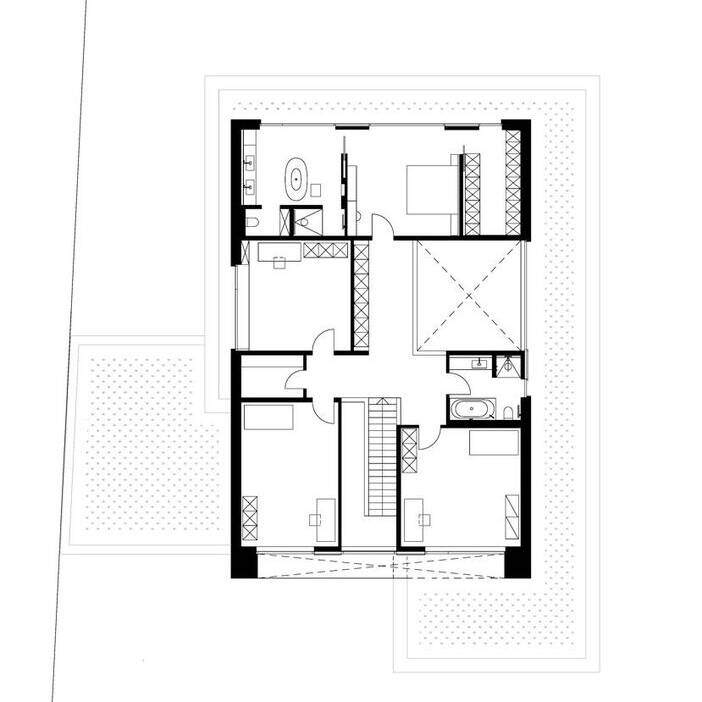 Ein Einfamilienhaus am Hang im Osten Düsseldorfs zeigt einen perfekt ausbalancierten Grundriss