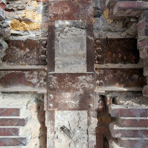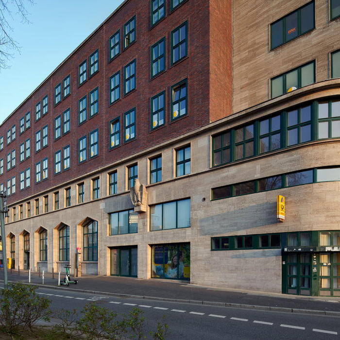 Für das denkmalgeschützte Gebäude gegenüber dem Hauptbahnhof und in unmittelbarer Nachbarschaft zum demnächst fertiggestellten „Königshof“ am Willy-Brandt-Platz war es dennoch höchste Zeit zu handeln. Die Schäden der Klinkerfassade, des Haupttragwerkes und der Fensteranlagen hätten sonst aufgrund offener oder defekter Anschlussfugen im Klinkermauerwerk, im Natursteinmauerwerk und zu den Fensteranlagen sowie durch Schäden an Dachabdichtungen und Blechabdeckungen weiterhin zugenommen. Die Fassade wurde daher in situ saniert, was nichts anderes bedeutet, als dass das ursprüngliche Erscheinungsbild der Fassade erhalten blieb. „Dazu gehört, dass wir die Bausubstanz soweit wie möglich geschont und wiederverwertbare Materialien wie Klinker- und Natursteine aus dem Bestand wieder eingebaut haben“, erläutert Anna Schulte-Zurhausen. Von Anfang an war die Denkmalbehörde in die Planungen eingebunden, etwa wenn es darum ging, Musterflächen zur Reinigung der Putz-Klinker- und Natursteinflächen abzustimmen und neue Materialen bis hin zu Details wie Mörtel und Materialien zur Fugensanierung zu bestimmen. Die Arbeiten gestalteten sich facettenreich. Das Haupttragewerk, bestehend aus einem Beton- und Stahlskelett, musste überprüft und gegebenenfalls saniert werden. So wurde das Stahlskelett gereinigt, Korrosion und Altanstriche entfernt und ein dauerhafter Korrosionsschutzanstrich neu aufgetragen. Die dafür entfernten Klinker wurden anschließend nach altem Vorbild wiederhergestellt, partiell unter Ergänzung mit neuen Klinkern. In die gesamte Fläche wurden äußerlich nicht sichtbare Verblendsanierungsanker eingebaut und abdichtende Maßnahmen getroffen. Eine vergleichbare Vorgehensweise wurde auch der Natursteinfassade zuteil. Lose Natursteine wurden fachgerecht gesetzt und verfugt, neue Natursteine nach altem Vorbild bemustert und integriert. Bei den Fenstern mussten Teile der Rahmen ersetzt werden, verbleibende Fenster erhielten einen neuen Anstrich. Das Ergebnis: Die Fassade erstrahlt wie am ersten Tag ihrer ursprünglichen Fertigstellung im Jahr 1933.