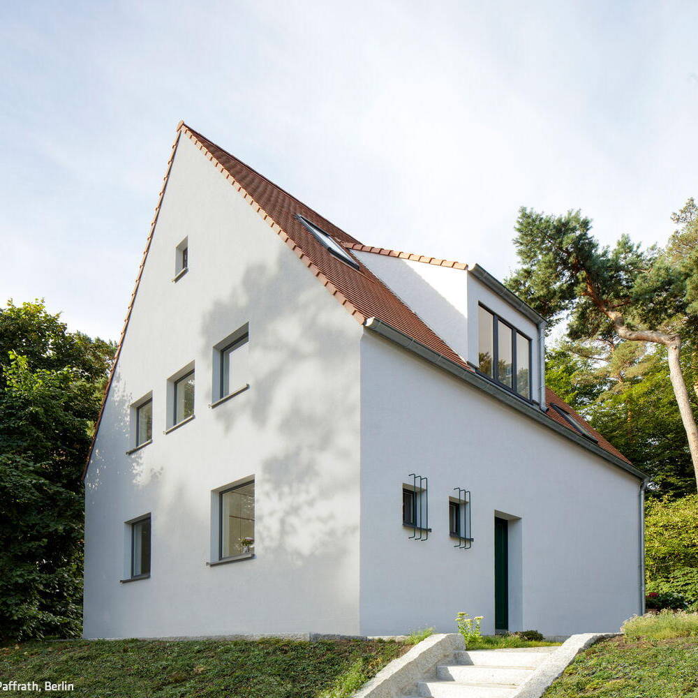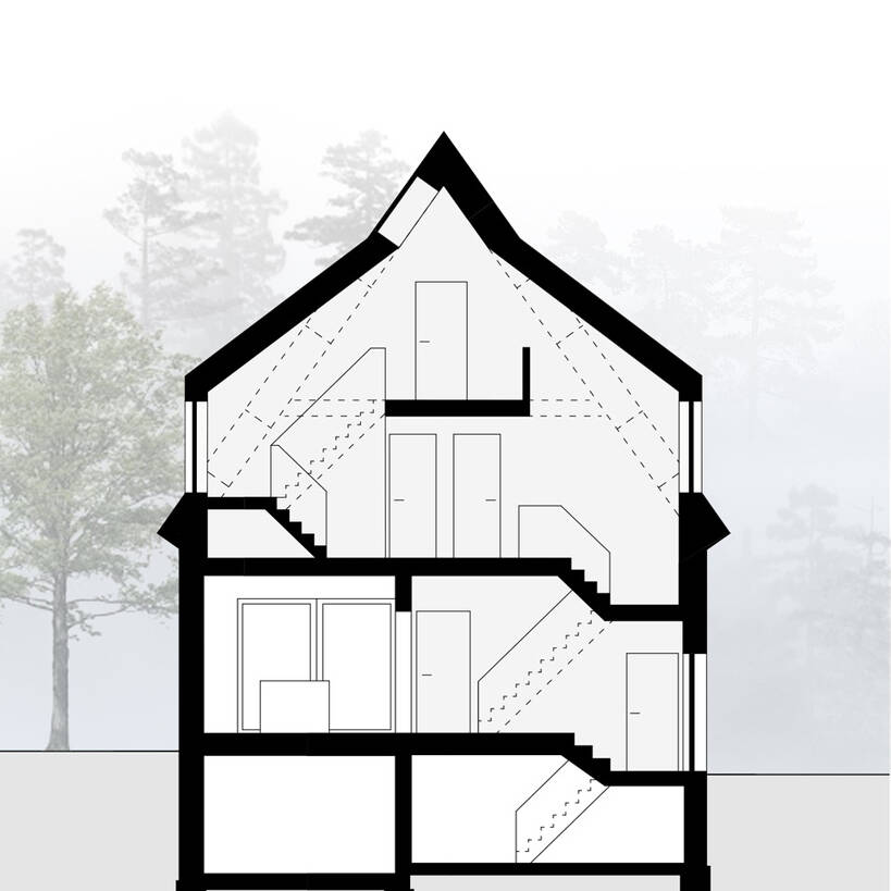 For decades before its rediscovery, this 1930s detached house sat vacant—apparently forgotten by everyone. The striking pointed gable that once defined its era held little appeal. Perched at the forest's edge in Zehlendorf, it seemed to be waiting for resurrection. The young, interdisciplinary team at Berlin-based Naice saw something entirely different: a stylish, ultra-modern dwelling with genuine potential—needing only the right moves to bring it into the 21st century. The renovation began with a complete gutting down to the foundation walls. The roof structure was strategically raised, allowing the interior to gain valuable living space while preserving the external roofline. Two new dormers flood the interiors with additional light. A central staircase now unifies all floors, while strategically placed mezzanine galleries carve out even more livable area. Wherever possible, original materials were salvaged and reintegrated—original floor beams among them.