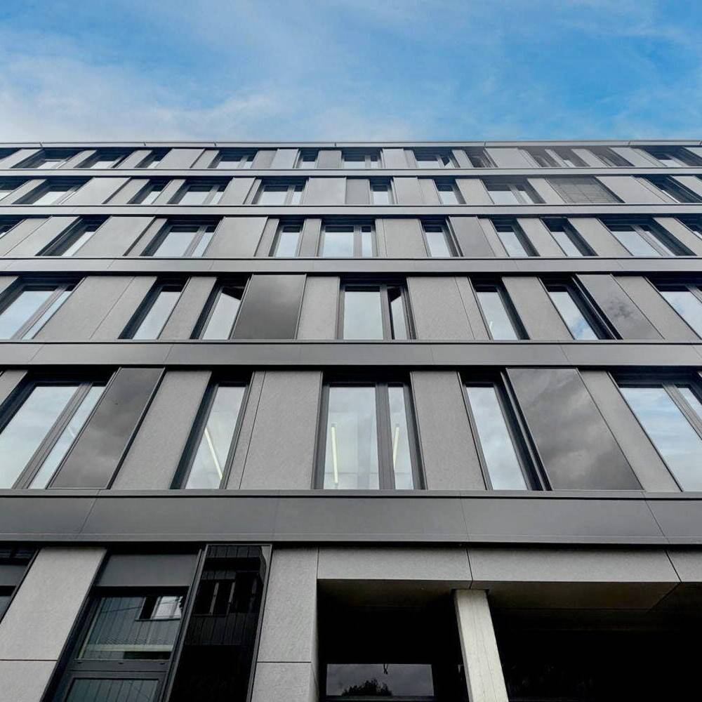 The TÜV Süd campus—anchored by the brick structure on Westendstraße and the iconic yellow-hued edifice by Sauerbruch Hutton—is now complete with a significant addition. The recently commissioned new building is strategically positioned behind the historic main structure, which, though still operational, has reached capacity. Over the years, this original building has undergone multiple expansions and renovations; it now requires comprehensive refurbishment and modernization. The spotlight, however, is on Brückner Architekten's latest addition. This building showcases technical innovations that set new standards for energy efficiency in administrative structures of this scale. Spanning approximately 20,000 m², the office building accommodates roughly 600 workstations. Constructed between 2022 and 2024 using BIM methodology, office owner Laurent Brückner recognized the critical value of this integrated approach from day one and has refined it throughout the project. The outcome is a contemporary office building featuring a parametrically designed, solar-optimized façade that seamlessly marries digital innovation, environmental responsibility, and architectural excellence.
