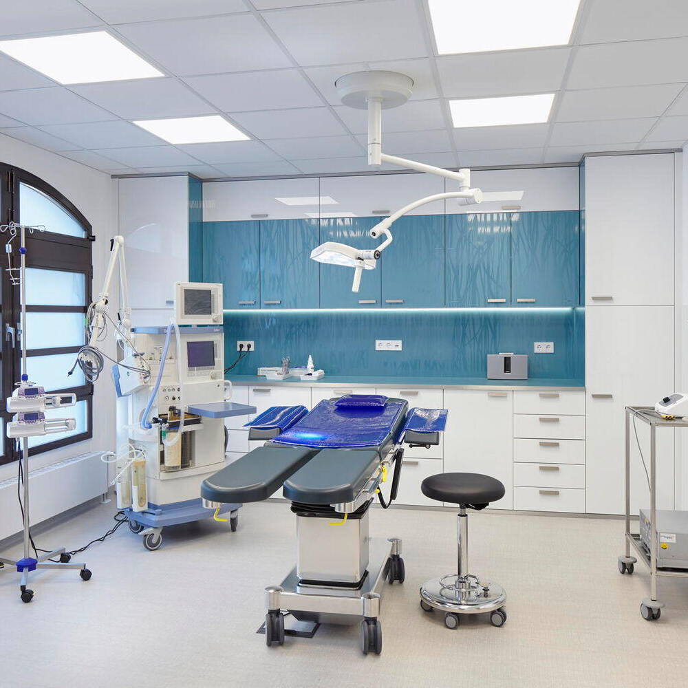 Harmony became the design's guiding principle, woven through every spatial decision, material selection, color palette, and custom furnishing across both the practice and surgical areas. The existing space's restricted ceiling height demanded precision; the architects turned this constraint into an opportunity. Precisely integrated LED elements in the ceiling became the design's focal point—visually linking the two zones, supporting daily workflows, and fostering an inviting ambiance. The carefully curated color scheme, seamless flooring, premium sanitary fixtures, and bespoke cabinetry all reinforce this unified aesthetic. Equally important, every material and element serves the practice's exacting demands: resistant to disinfectants, built to last, functionally optimized, and tailored to streamline daily operations.