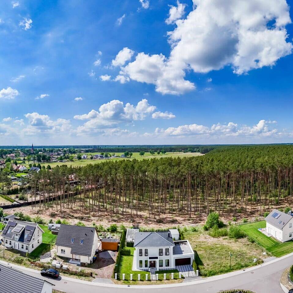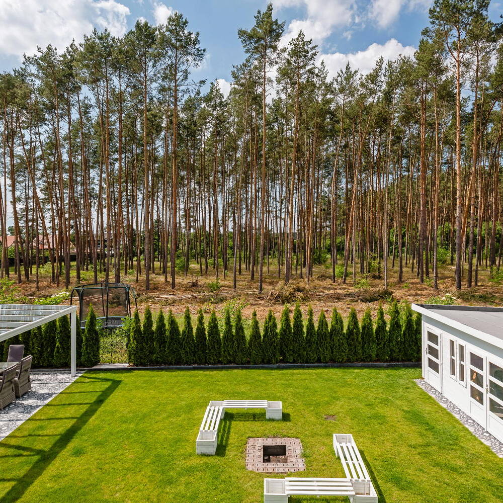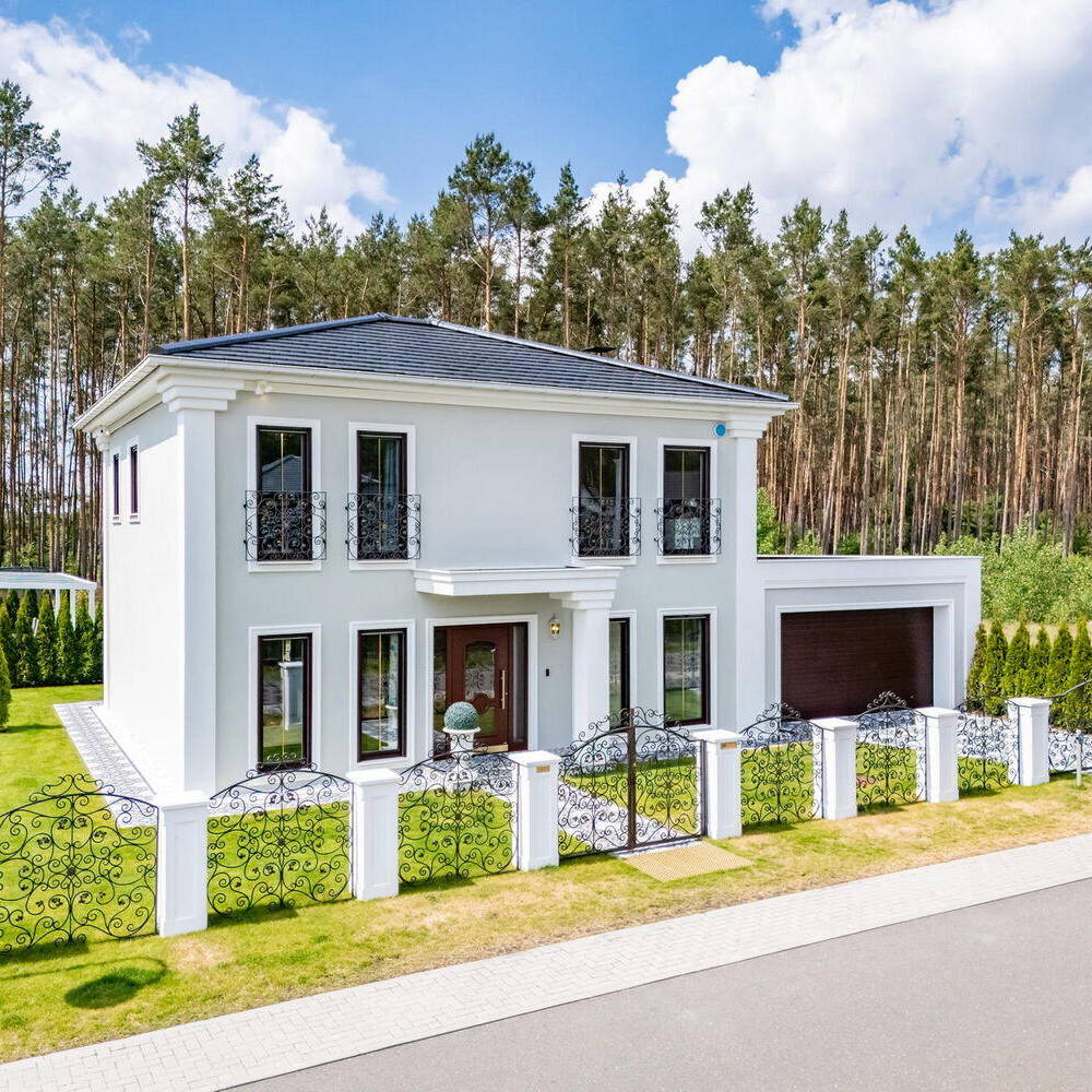 Nestled in lush countryside just minutes from Berlin, this striking modern villa epitomizes contemporary design. Clean architectural lines and a pristine white façade create timeless elegance, while decorative metal railings frame each window with refined detail. Together, these elements convey both exclusivity and understated luxury. Across two levels, the generous single-family home showcases six beautifully appointed rooms designed to the highest standards. Key amenities—including a fireplace, private sauna, and meticulously landscaped gardens—add a layer of luxury while promising genuine relaxation and well-being. Throughout, expansive windows flood the interiors with natural light, while premium materials combine to establish a warm, inviting atmosphere. The home's symmetry and precise architectural composition radiate calm and harmony, creating an ideal sanctuary that harmonizes seamlessly with the natural beauty surrounding Berlin. Here, rural tranquility meets urban convenience: you enjoy both countryside seclusion and easy access to the capital's pulse. This is a home for those seeking both retreat and sophistication—a stylish, luxurious, and utterly distinctive residence.