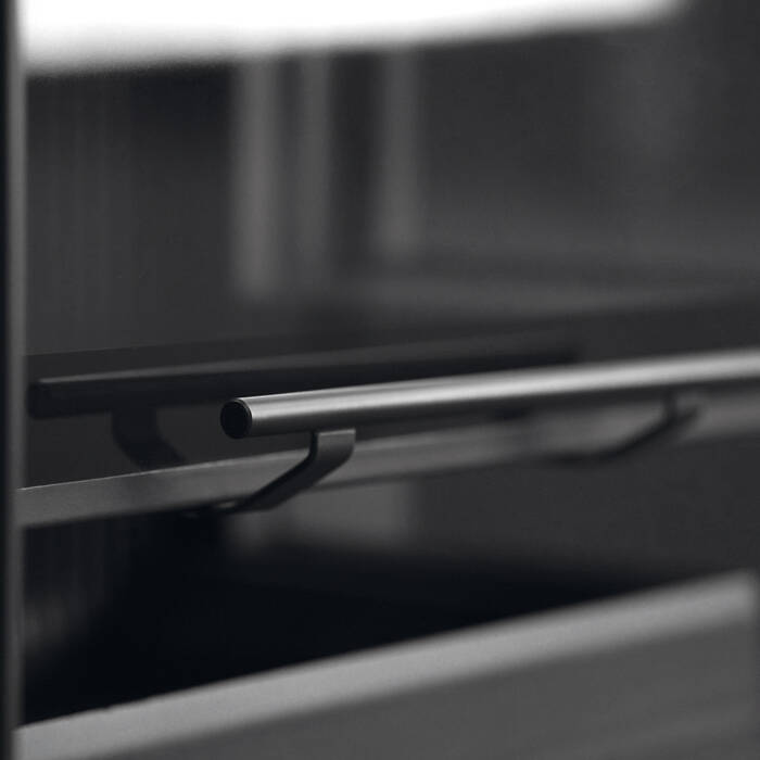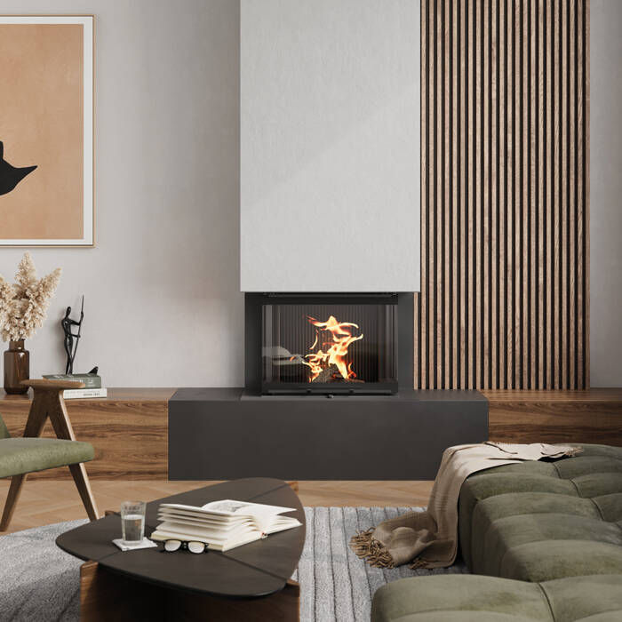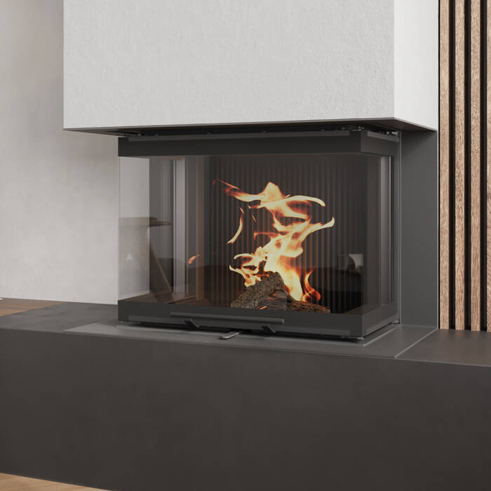 The lower air baffle encircles the combustion chamber, shielding both the seal and glass from embers. Smooth surfaces paired with a cast iron interior lining create a refined aesthetic – these fireplaces remain striking focal points in your living space, even when dormant, their near-black finish sophisticated and understated. Every detail reflects thoughtful engineering: the air slide operates with pleasant acoustics, while opening and closing the front delivers reassuring solidity. The innovative 3-piece glass design is both durable and effortless to clean, while the audible "click" of the locking mechanism confirms the glass is properly secured.