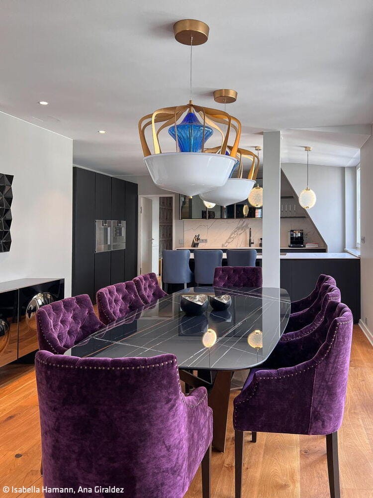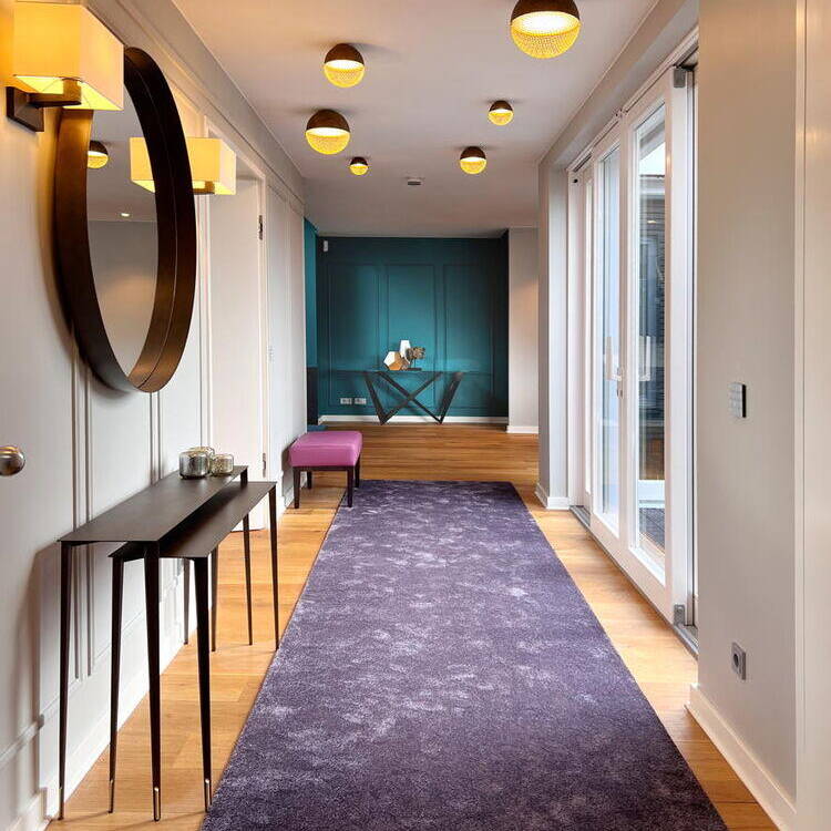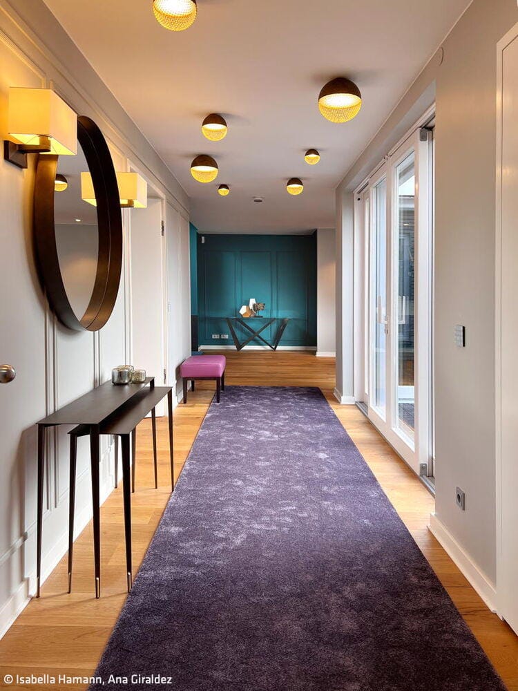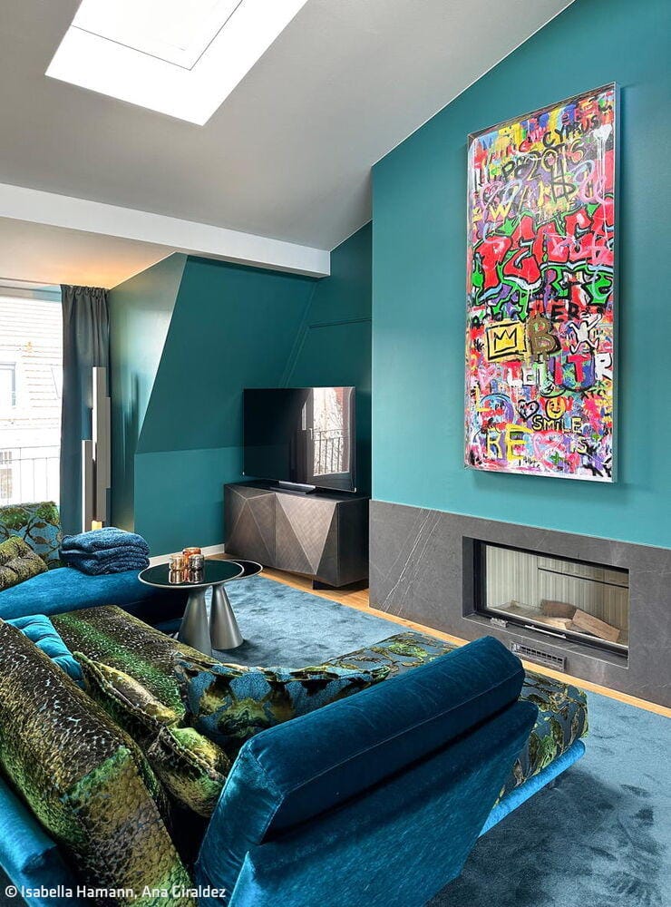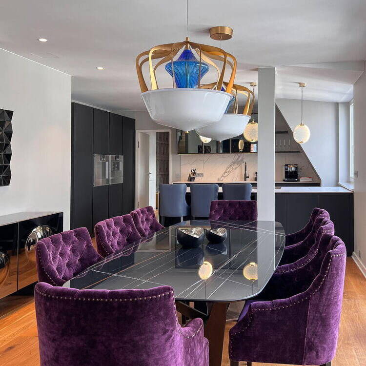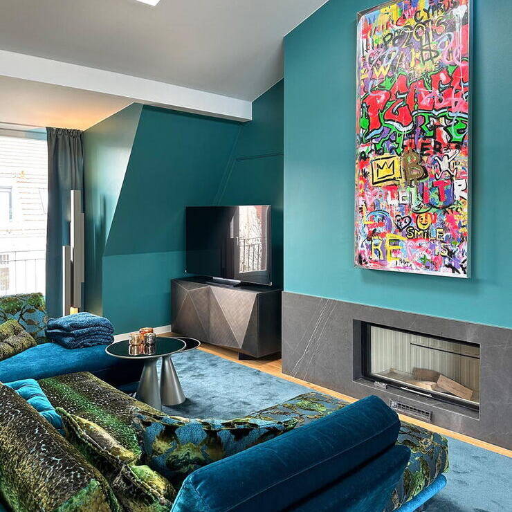 Open-plan interior design in colour – for a modern luxury penthouse in Berlin