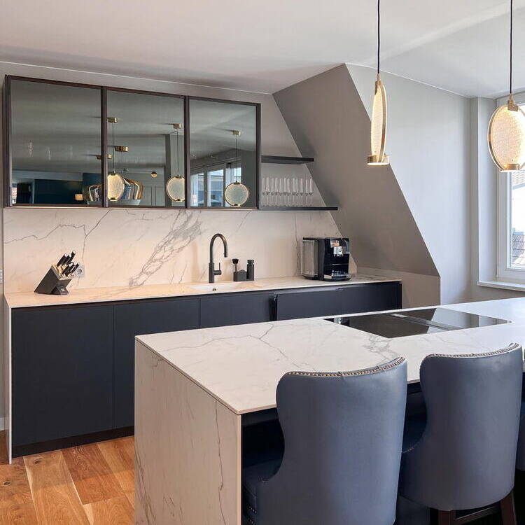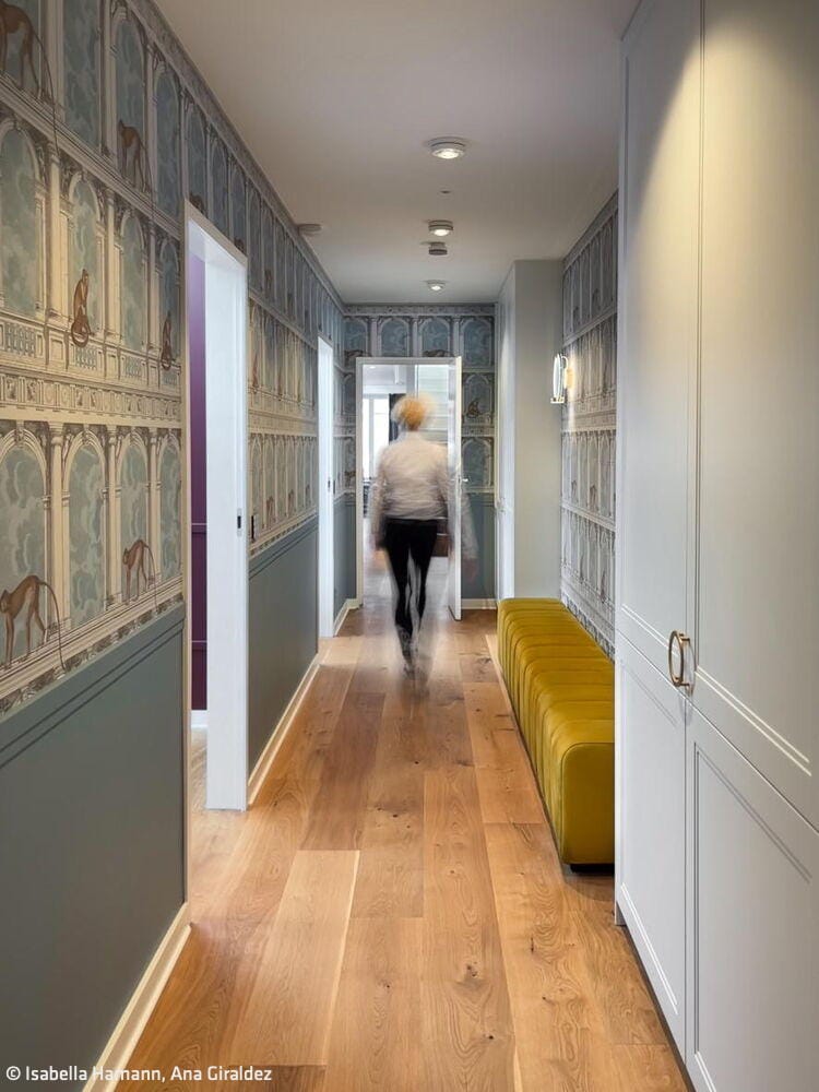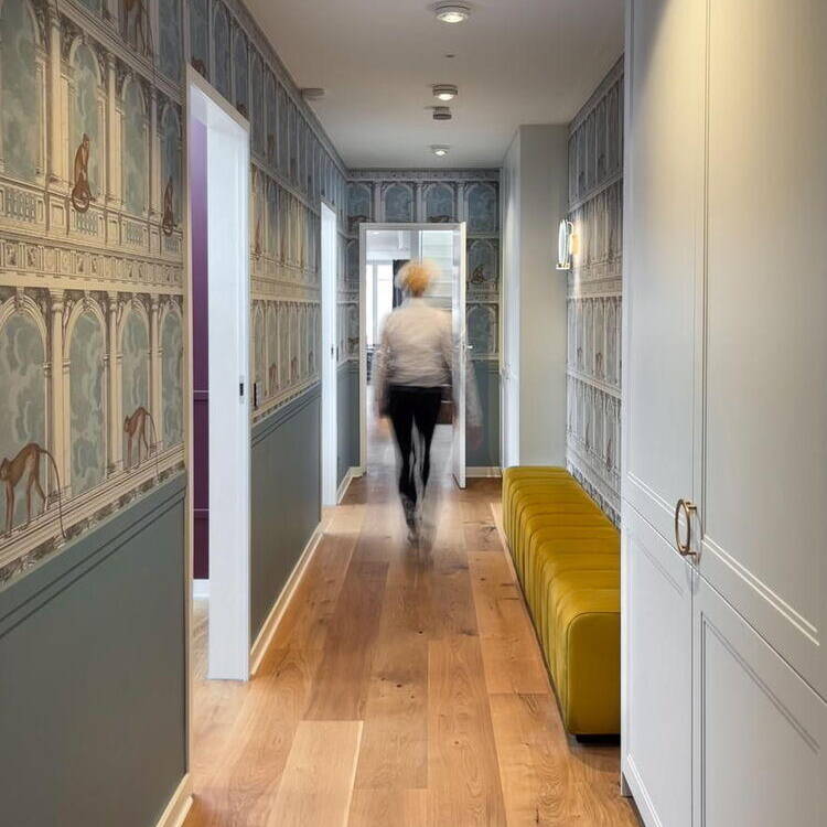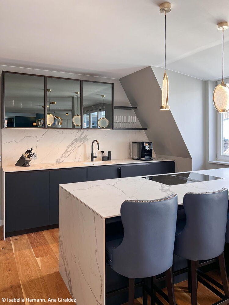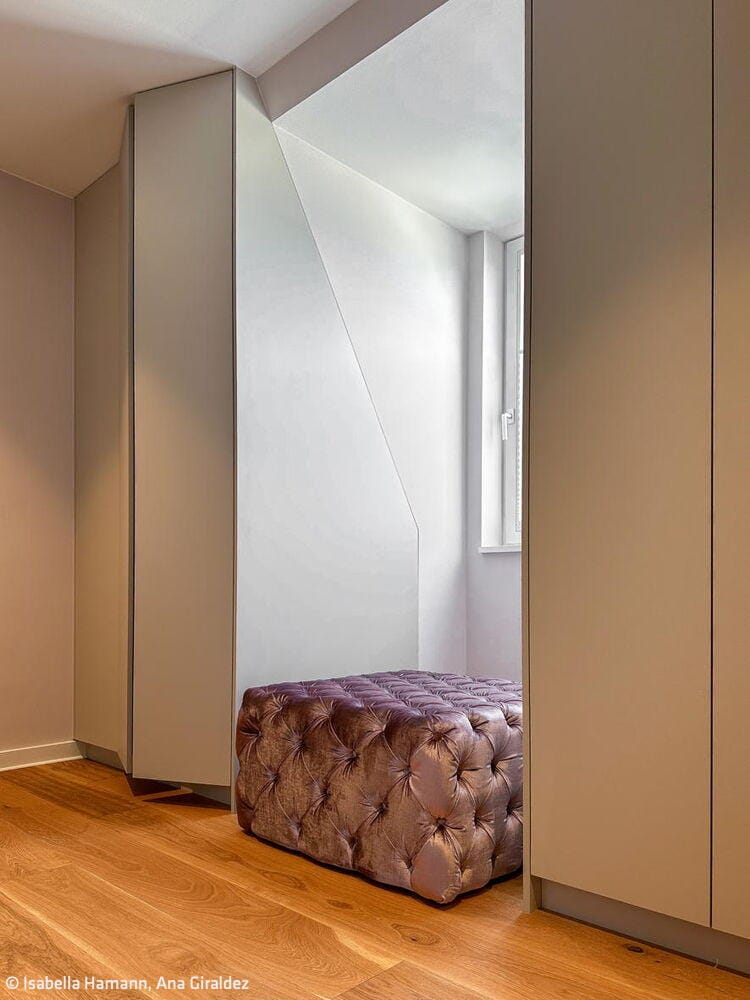 Perched on the top floor of a charming historic building mere steps from Kurfürstendamm, this apartment commands breathtaking views across Berlin's rooftops. The design philosophy was elegantly simple: translate that sense of commanding the cityscape into every corner of the space. Every room was oriented to preserve those sweeping vistas—whether you're relaxing on the living room sofa or working out in the fitness studio. The panorama became the focal point; the apartment itself became a private balcony suspended above Berlin. The owners envisioned a modern, vibrant atmosphere and welcomed bold creative thinking. Interior designer Isabella Hamann engaged them in detailed conversations to understand their vision, then presented three distinct floor plan concepts alongside a comprehensive design proposal. This became the springboard for all subsequent decisions, empowering the penthouse owners to confidently choose a style that truly reflected their aspirations. The open floor plan presented a delicate challenge—maintaining generous, light-filled social spaces while preserving intimate sanctuaries for privacy. Two additional complexities shaped the project: orchestrating sophisticated lighting design and integrating a complete smart home system throughout.