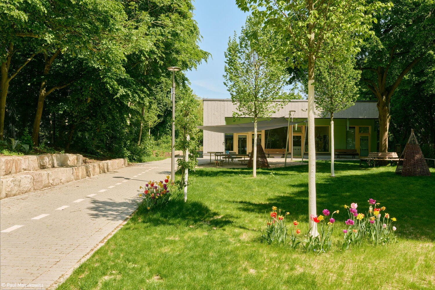 A nursery in Düsseldorf-Flehe reimagines a previously sealed site within Ulenbergpark