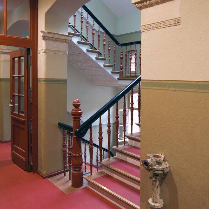 The ground floor additionally houses offices, gallery space, and a standout venue for dance and cultural events. The upper storey comprises four residences for art fellows, plus a shared studio space tucked beneath the roofline. The Eierhäuschen officially reopened its doors in February 2024. Adjacent to the site, conversion of a sprawling former warehouse is underway, destined to become an important cultural venue.