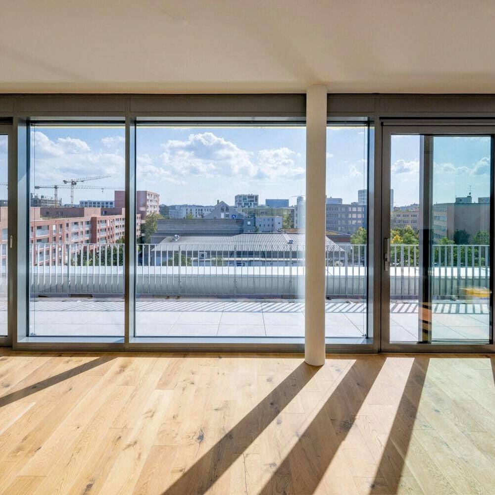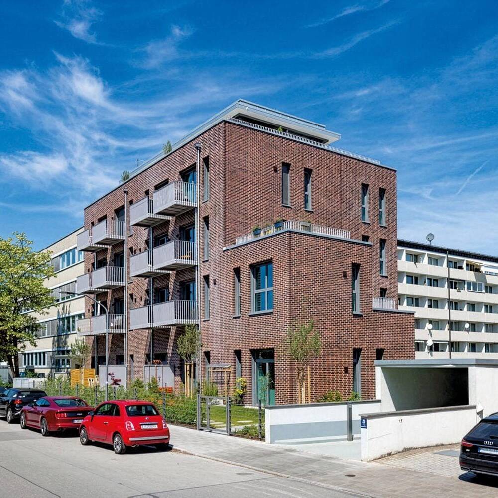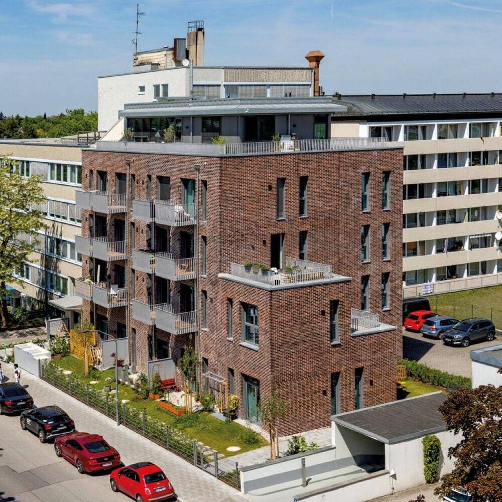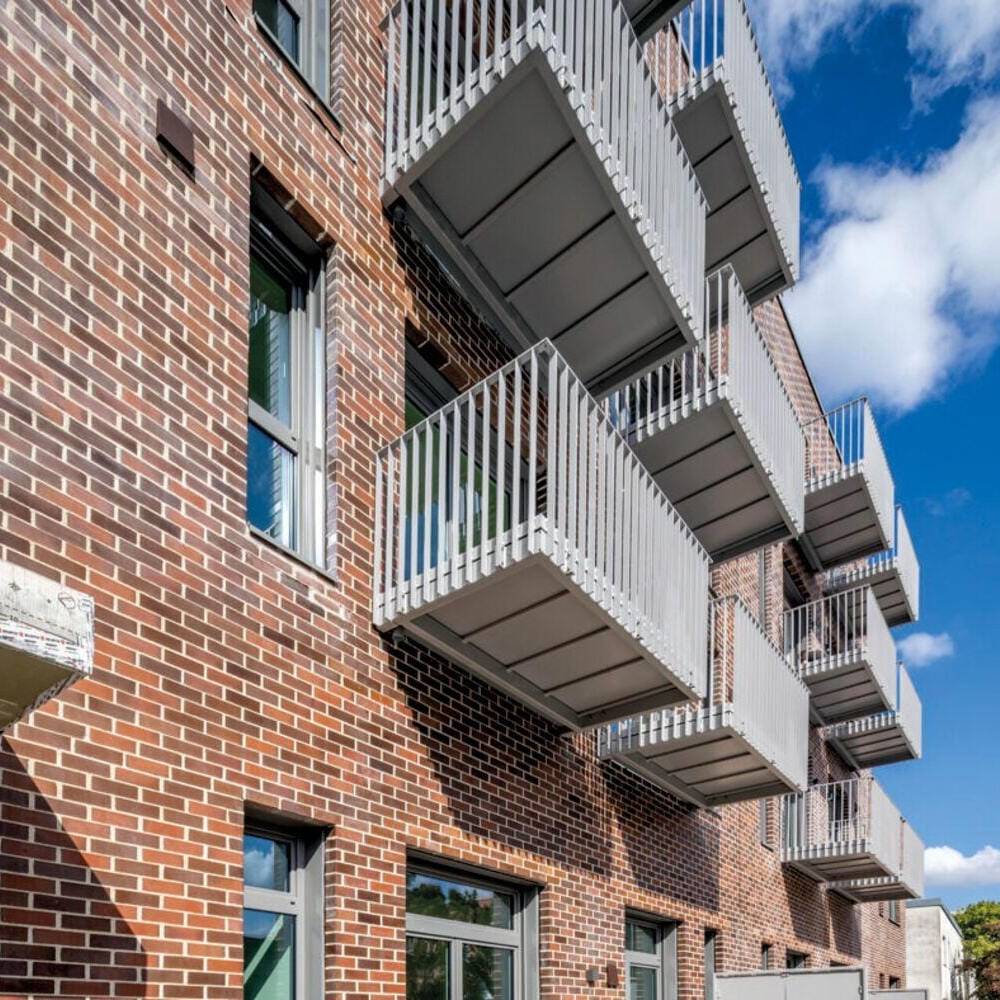The generous floor heights were retained despite structural reinforcement, giving the flats an open, loft-like character. The building was given a clinker brick façade made of blue-fired red clinker bricks, which gives the structure a strong presence. All flats face south and have balconies or terraces.