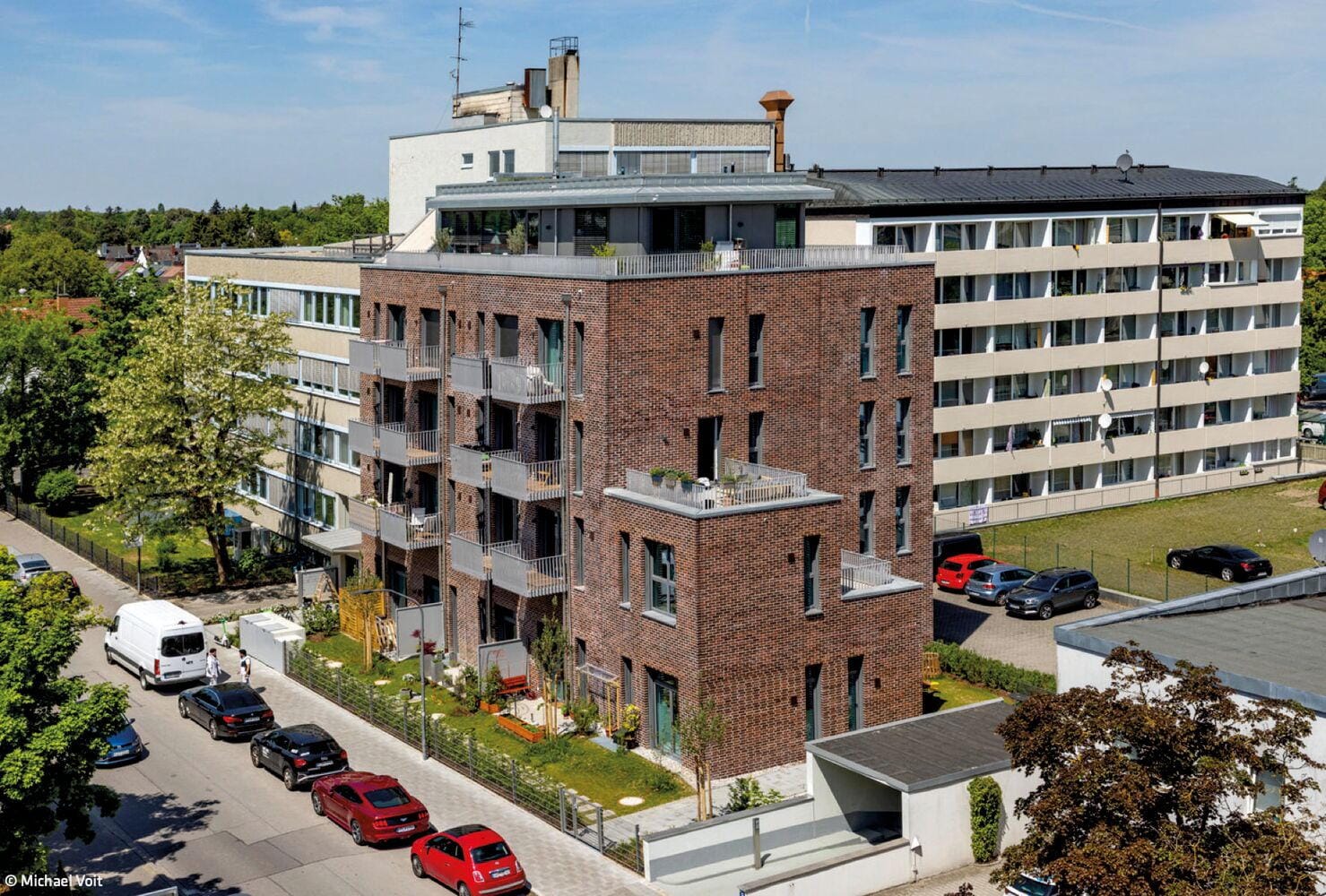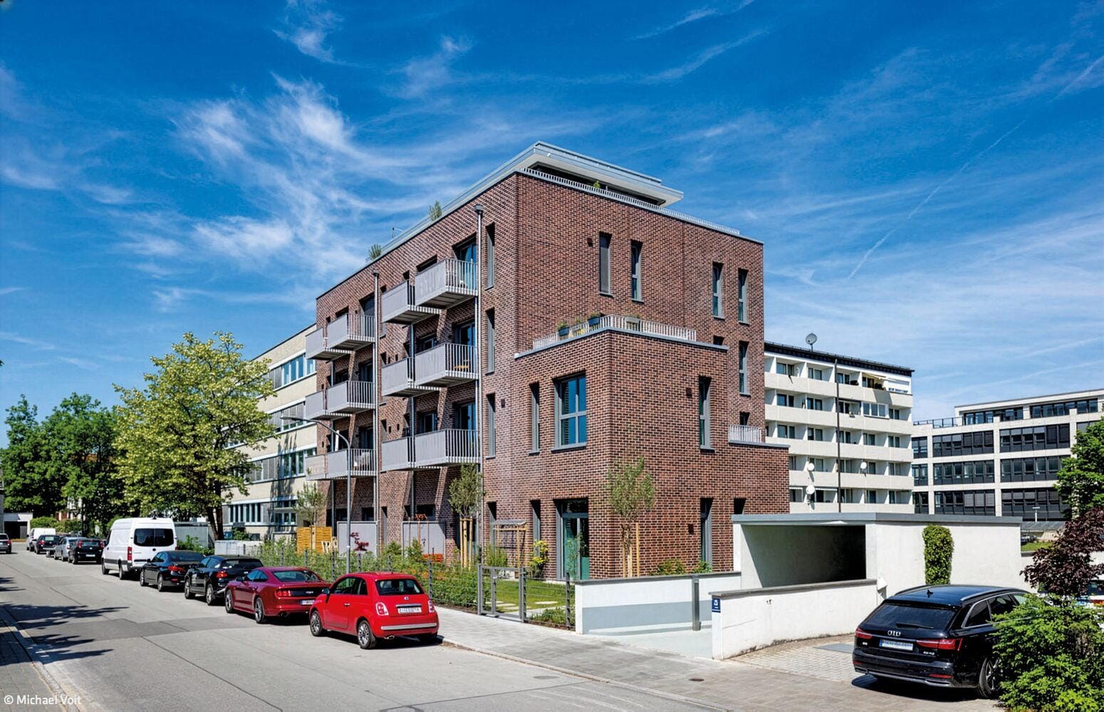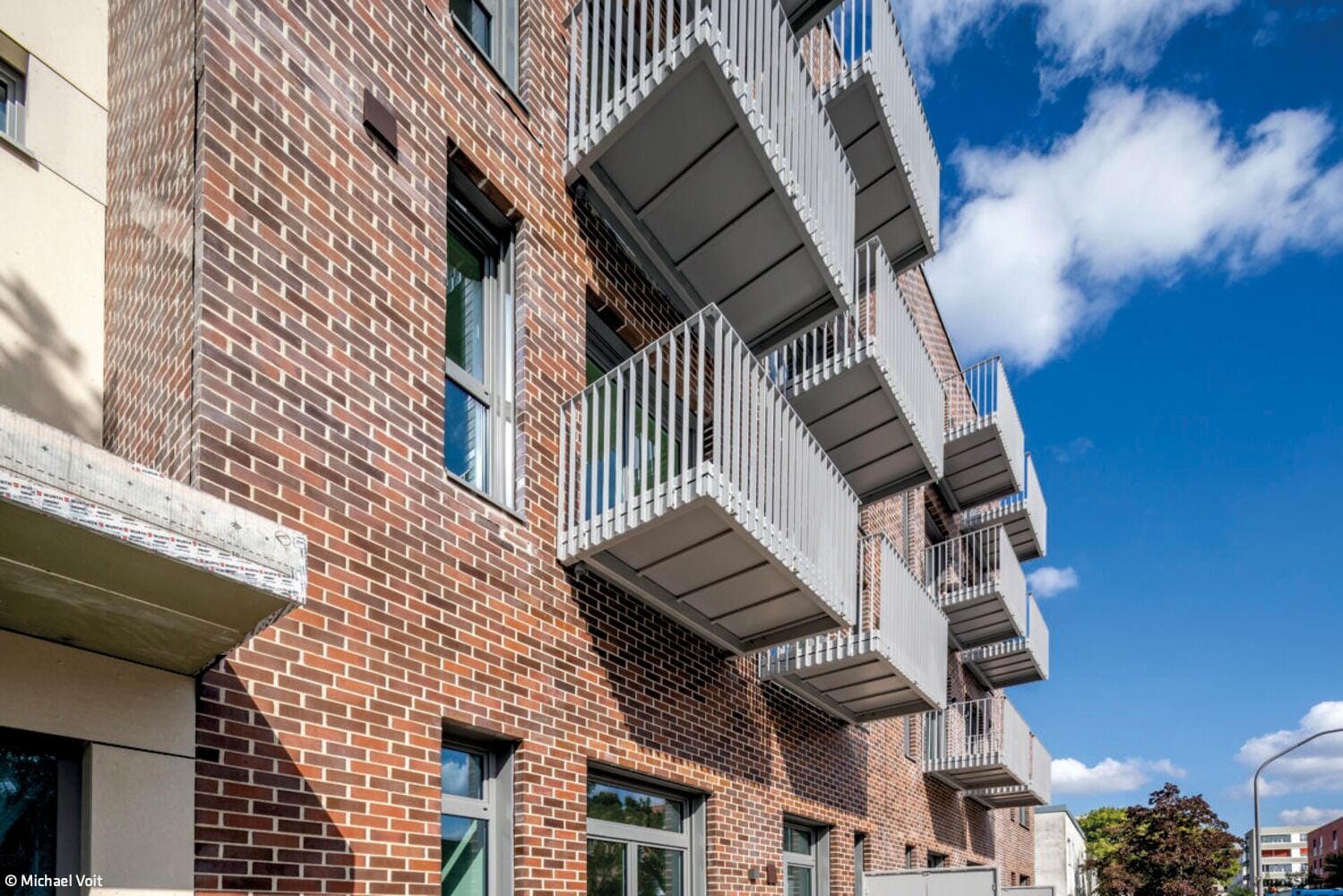 The generous floor heights were retained despite structural reinforcement, giving the flats an open, loft-like character. The building was given a clinker brick façade made of blue-fired red clinker bricks, which gives the structure a strong presence. All flats face south and have balconies or terraces.