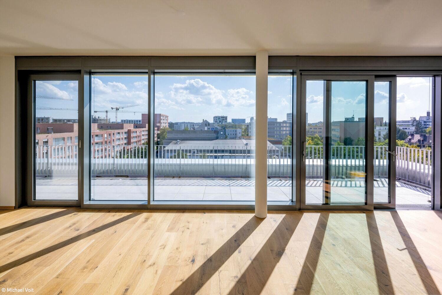 The existing building rights were retained, but additional space was gained through an extension and the addition of a penthouse. First, the reinforced concrete skeleton was gutted to enable the planned high-quality residential use. The reinforced concrete structure was in greater need of renovation than expected. Neither the load-bearing capacity nor the geometry complied with the applicable standards, so extensive structural reinforcement was necessary. In the foundation area, loads had to be redistributed in order to safely transfer existing and new loads. The penthouse extension was constructed using lightweight materials, so the required storage mass had to be achieved through external greening. It was also not possible to attach railings to the existing structure, so ballast railings were used instead.