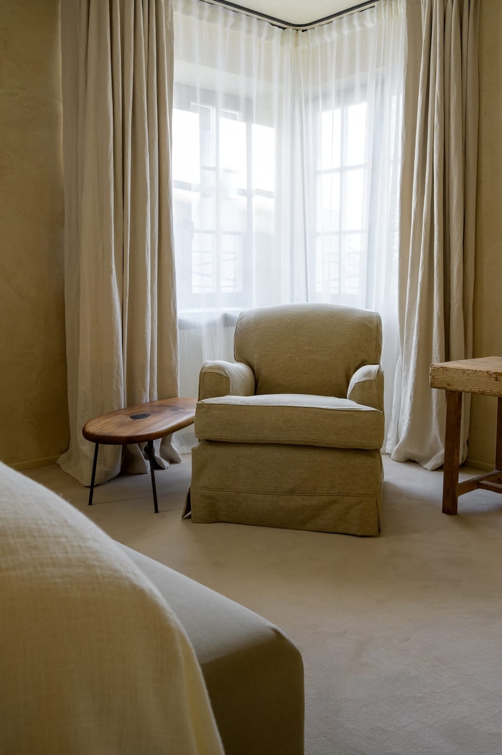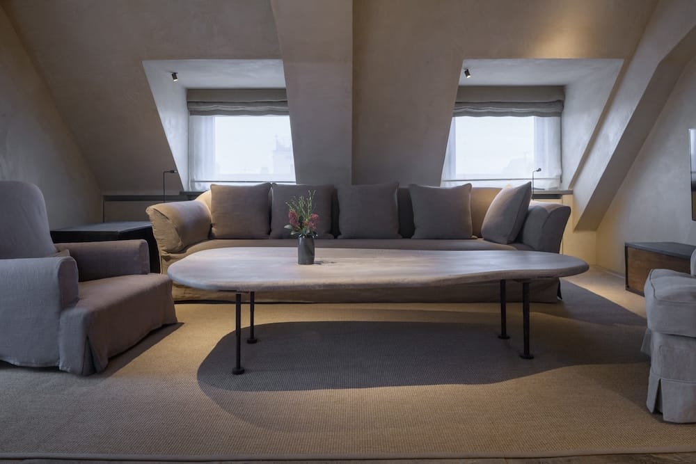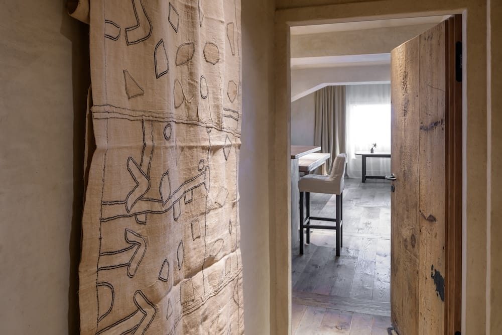The suite effortlessly expands into a two- or three-bedroom layout, offering up to 170 square metres of refined space. This includes an additional double bedroom that connects seamlessly to the main suite, plus a single room featuring a distinctive alcove bed. For those acquainted with the Bayerischer Hof, the mastermind behind this extraordinary space is unmistakable: Axel Vervoordt, globally celebrated interior architect and devoted art and antiques collector, delivering his ninth transformative project for the hotel. The Belgian visionary is renowned for his singular philosophy—crafting spaces that feel as though they've existed for centuries. His hallmark aesthetic marries authenticity with timeless elegance, drawing from natural materials, historical artifacts, and carefully balanced proportions. Here, Vervoordt has embraced natural hues and organic materials: warm earth tones, 18th-century oak flooring, hand-dyed 19th-century linen upholstery, and walnut furnishings that embody his unmistakable sensibility. A 3.2-metre sofa in soft grey invites unhurried moments of repose. Lighting and vessels from Vervoordt's Gravenwezel ateliers—including oak and handmade Japanese paper fixtures—impart a distinctive character throughout. The exquisite fabrics are personally curated by May Vervoordt, his wife, whose refined selections elevate the suite's singular atmosphere.