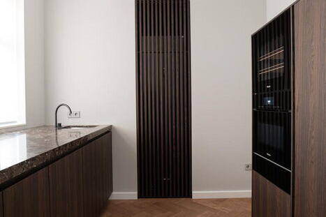 A bespoke kitchen by VOIT Schreinerei+Planung becomes the focal point of an Art Nouveau villa.